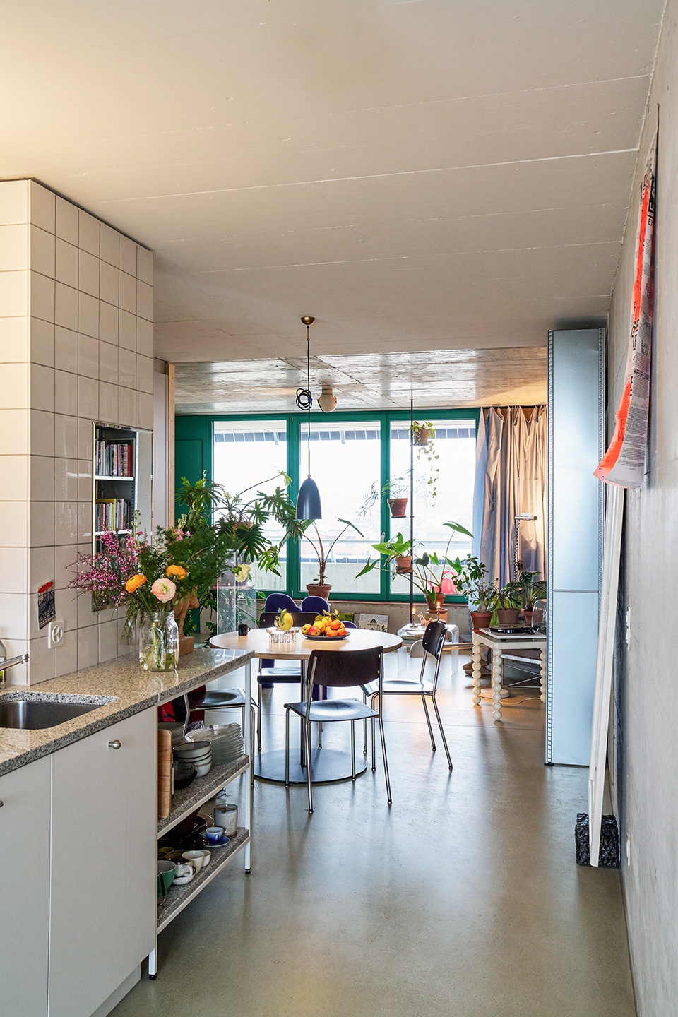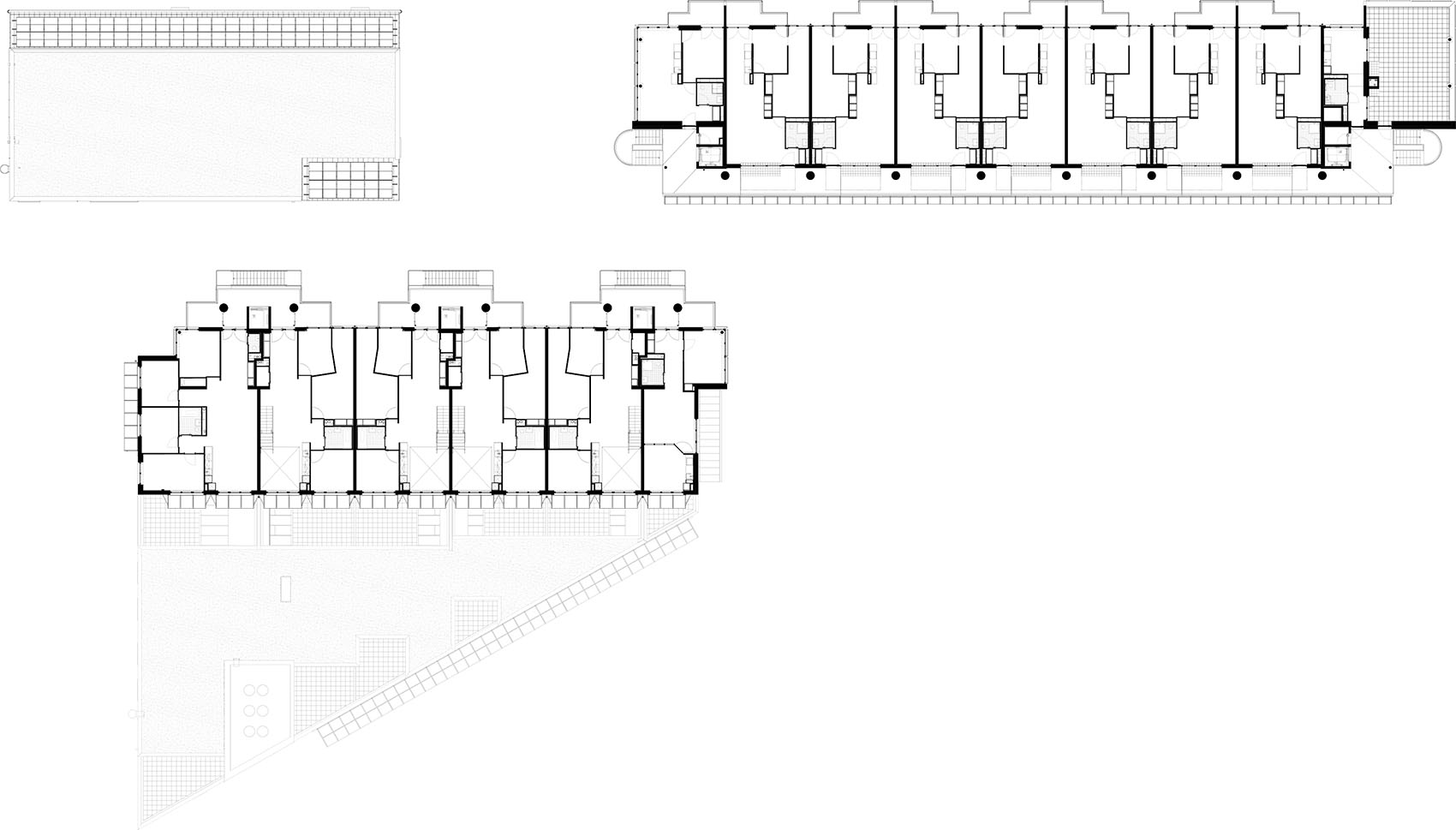 理性的竖向叠加、紧凑的进深以及一致的结构体系实现了高效建造。尽管层高适度、住宅面积符合补贴住房的最小标准,空间的通透组织与精心比例控制的立面带来宽敞感。住宅内部组织中,卧室通过前室向立面延伸,使结构跨度高效。持续采用共用承重墙体系,选择了一种可快速且经济实施的结构类型。尽管理性严谨,住宅依然呈现出丰富的空间层次。即便层高与面积较为节制,依然感受开阔。经济性的建造构件构成克制背景,辅以有选择的强调与可被使用者再诠释的细部。低投资成本最终形成鲜明的建筑表达与高日常使用价值。屋顶露台、宽敞入口空间、共享门槛空间作为有限程度的集体“奢侈”惠及多数人,避免空间的冷漠感。建筑保持一种有意的未完成状态,以吸纳生活痕迹并鼓励使用者再诠释。