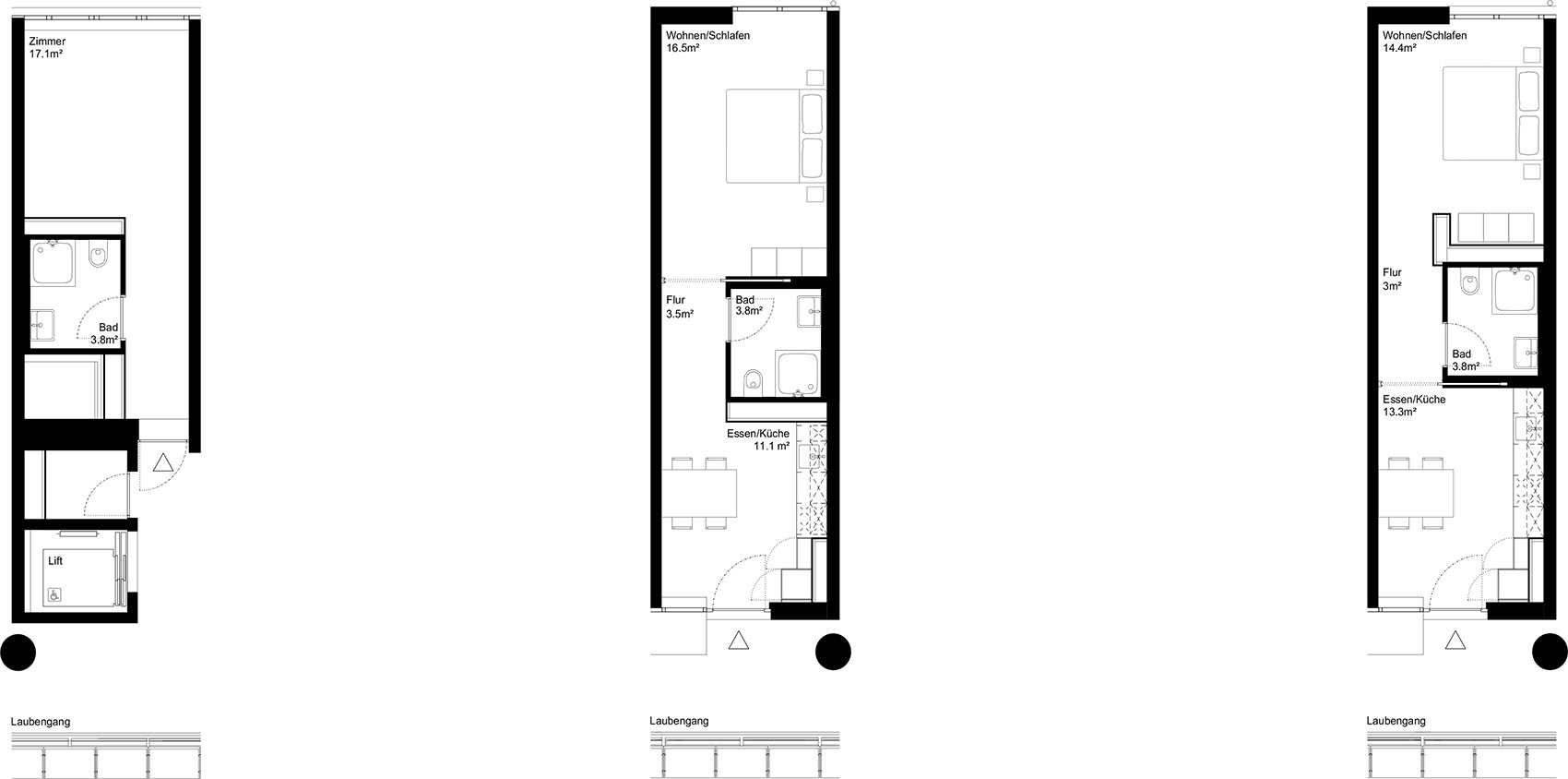 An ensemble of compact, simple volumes minimises cost-driving factors while enabling a rich programmatic and typological diversity. Design strategies focus on achieving strong spatial and social impact with minimal economic and material means. Commissioned by the municipal foundation „Einfach Wohnen!“, the project understands affordable housing as a societal responsibility. Reducing floor area consumption is central—but reduced space demands higher performance in functional, spatial, climatic, and social terms. Inspired by Italo Calvino’s concept of “lightness,” the project embraces simplicity without austerity, allowing architectural quality to emerge from economic constraints rather than collapse under them.