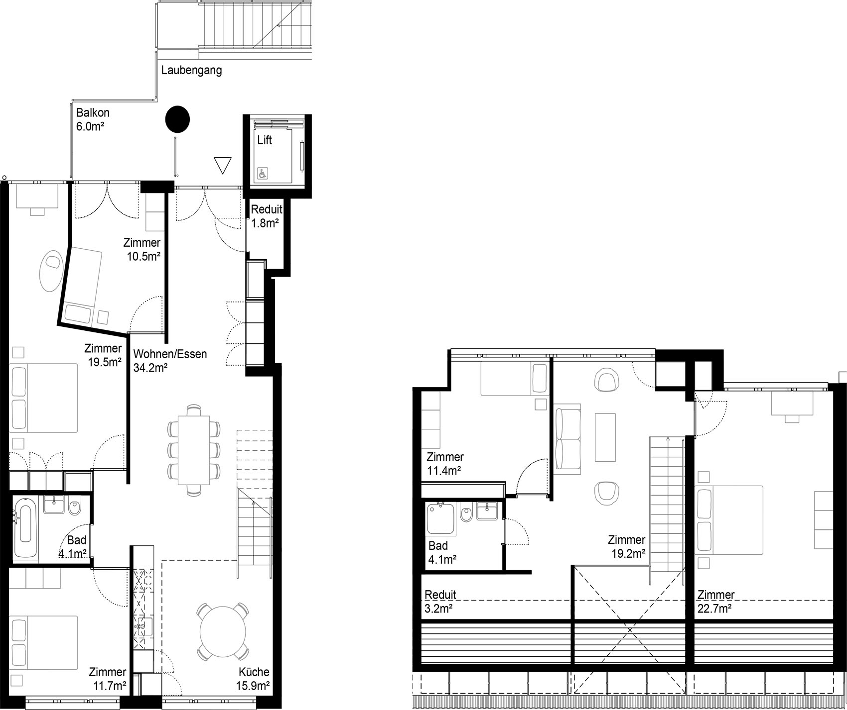 ▼顶层七居半户型平面图,Attic apartment 7.5 rooms plan