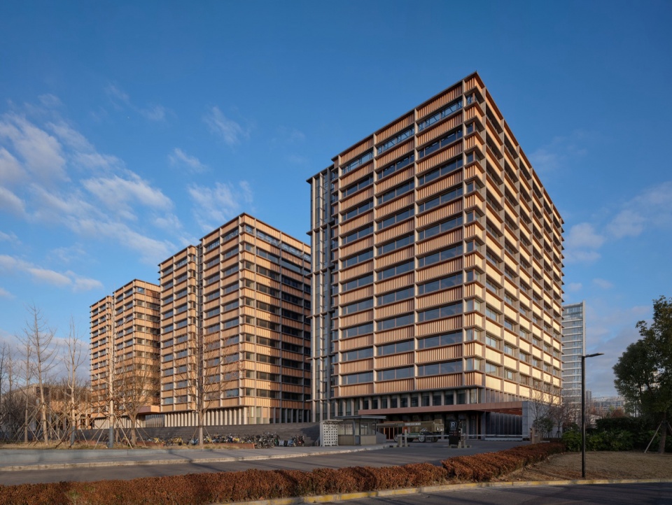 The Changfeng Ecological Business District is located in the southern part of Shanghai’s Putuo District, between the Inner Ring and Middle Ring roads, along the northern bank of Suzhou Creek. Formerly known as the Beixinjing Industrial Area, it is a model for the successful transformation of Shanghai’s old industrial zones and one of the city’s first key areas to promote modern service industry clusters. The district has begun to develop characteristics of an open & service-oriented, headquarters-intensive, and eco-friendly area. The Shanghai Automotive Industry Corporation (SAIC Motor), China’s largest automotive enterprise, is currently undergoing a transformation to become a globally recognized automotive company with international competitiveness and brand influence. The Shanghong Business Center project, located in the Changfeng Ecological Business District, will focus on automotive consumption and brand culture, aiming to create a headquarters cluster for modern automotive service enterprises, a hub for new technologies, knowledge, and leading talents in the modern automotive service industry, as well as a leading base for the demonstration and experience of new automotive service businesses. The project emphasizes energy-saving, green, environmentally friendly, and intelligent design concepts and is SAIC’s first project to achieve both China’s Three-Star Green Building and LEED Gold certifications.