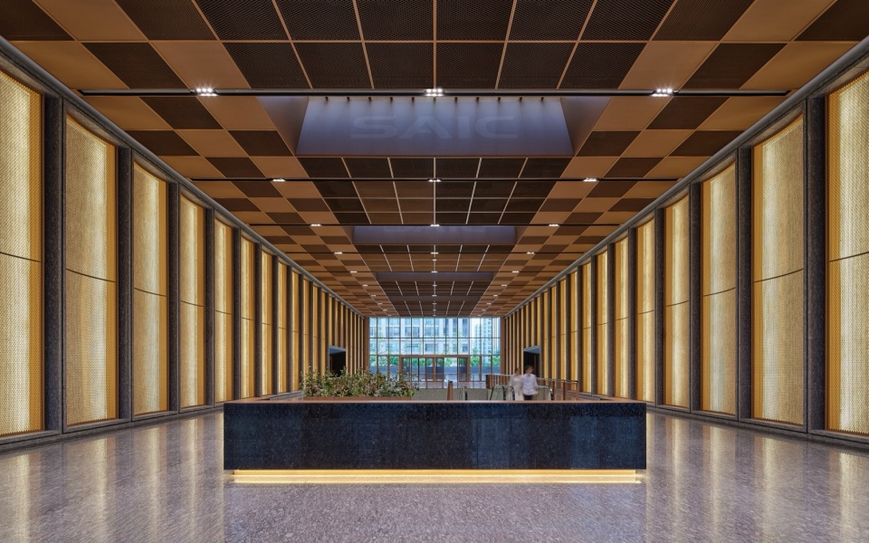 The interior design aims to showcase the brand’s image, blending contemporary craftsmanship aesthetics with a high balance between functionality and artistry. The ground floor lobby, as the most important interior space, continues the use of exterior building materials to create a seamless integration, reflecting a simplicity and gracefulness. It not only establishes the atmosphere of the reception area but also accommodates brand display needs by incorporating elements of SAIC’s identity.