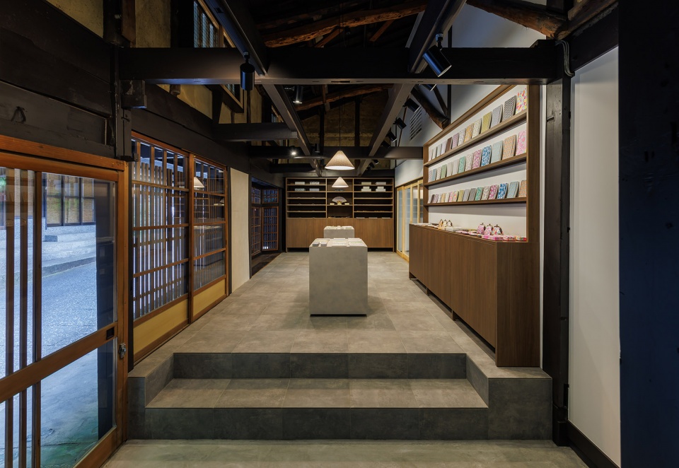 Adashino House is the new home of Shogado, a company known for its shikishitanzaku (decorative paper strips), washi paper goods, and Japanese stationery. The project is set within a traditional Japanese machiya town house located in the Saga-Toriimoto Historic Buildings Preservation District of Kyoto. The aim was to create a space where the beauty of washi could be experienced in everyday life, while preserving the quiet dignity of the old machiya and weaving in modern elements that bring freshness to the interior.