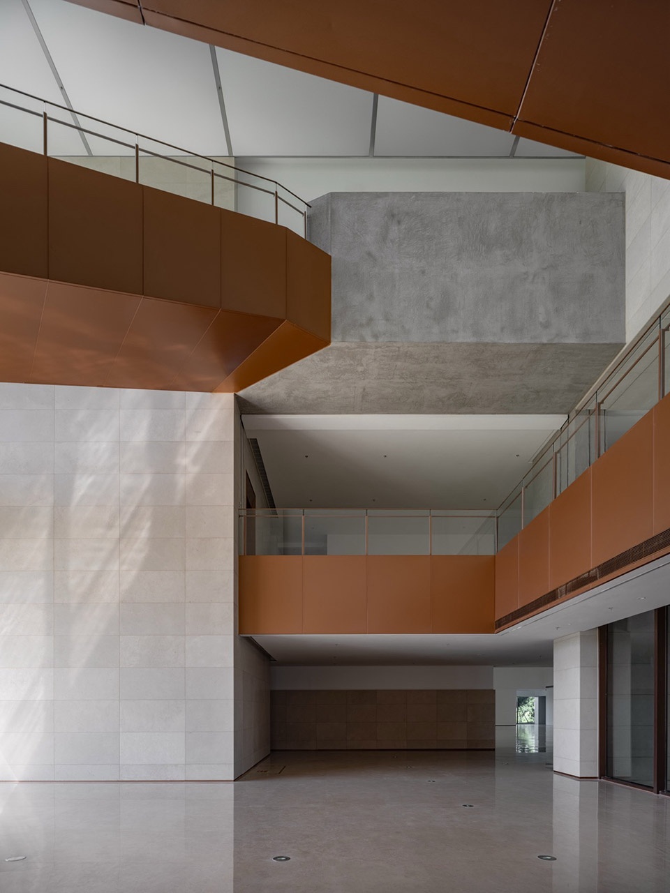 Client requires multiple multifunctional halls of different space sizes to accommodate various types and scales of activities. The initial operational characteristics, mainly based on leasing, determine the status of their non resident exhibition halls. The construction land for the project is relatively tight, and the special land supply attribute makes the building compact and composed of several square boxes. The non open and inward facing space inside has a certain barrier to the surrounding natural environment, so the design attempts to achieve mutual infiltration between the architectural space and the natural environment through an inside out approach. Different forms of glass curtain walls and lighting wells create conditions for this form.