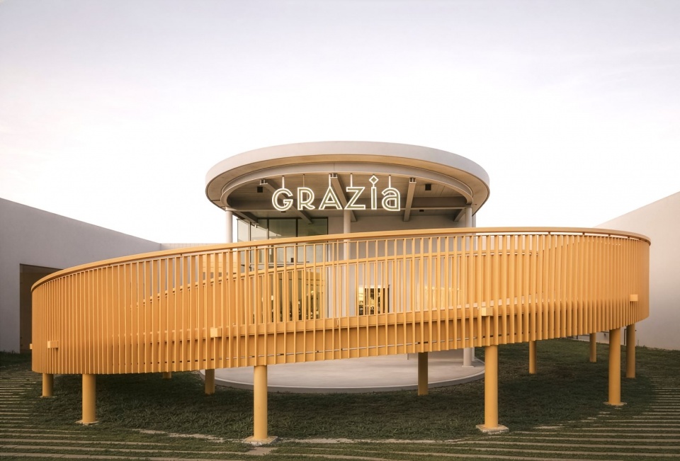 零售单元被设计为简洁的白色体量,拥有圆润的边角和带遮阳设施的店面。这种柔化的几何形态营造出一种动感,并防止建筑给人造成压迫感。宽阔的白色墙面为醒目的图形标识提供了干净的背景,使得各个品牌的个性得以展现,而不会让场地显得杂乱。