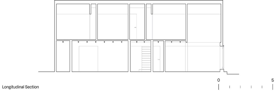 在下层空间中,设计通过钢筋混凝土构件将房屋历史中不同阶段形成的多种结构体系整合在一起。上层则采用轻型结构,以避免对原本只为单层建筑设计的基础造成额外负担。