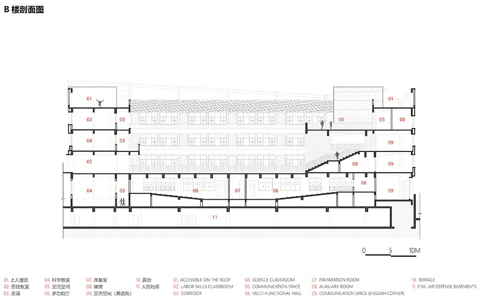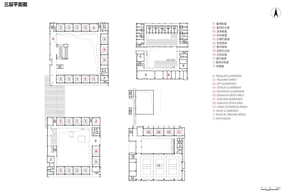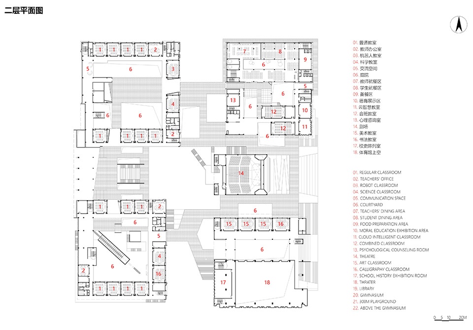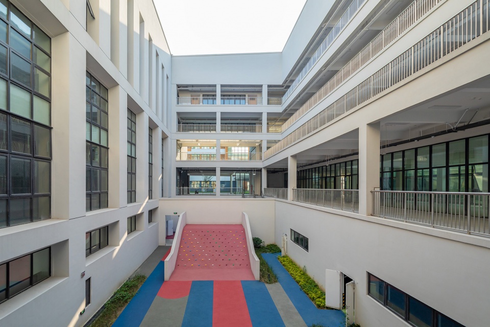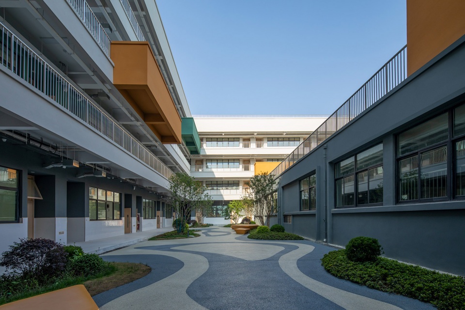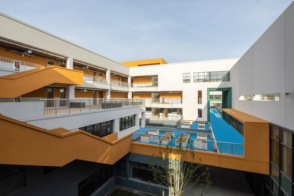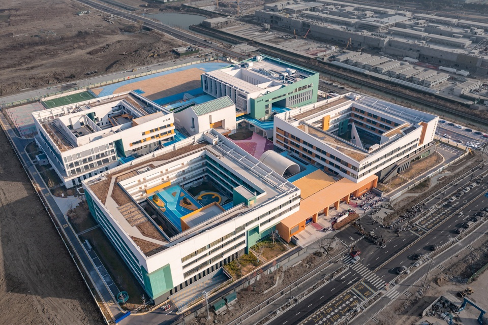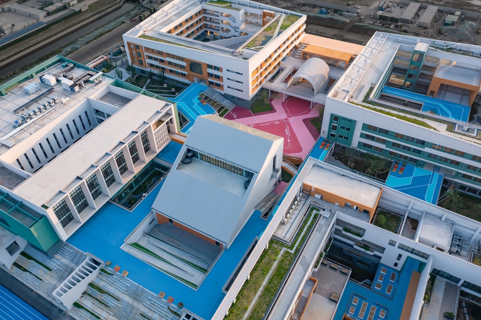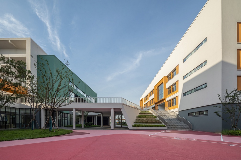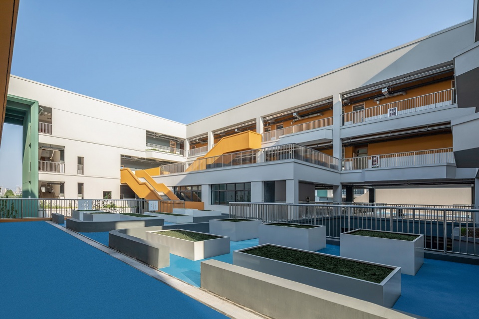 Higher Grades Cluster (Grades 4-6): Simple forms and clean facades are employed to foster an atmosphere of concentration. Ground-level platforms subdivide the main courtyard into smaller patios, and multi-level rooftop activity spaces are provided to meet social and recreational needs.