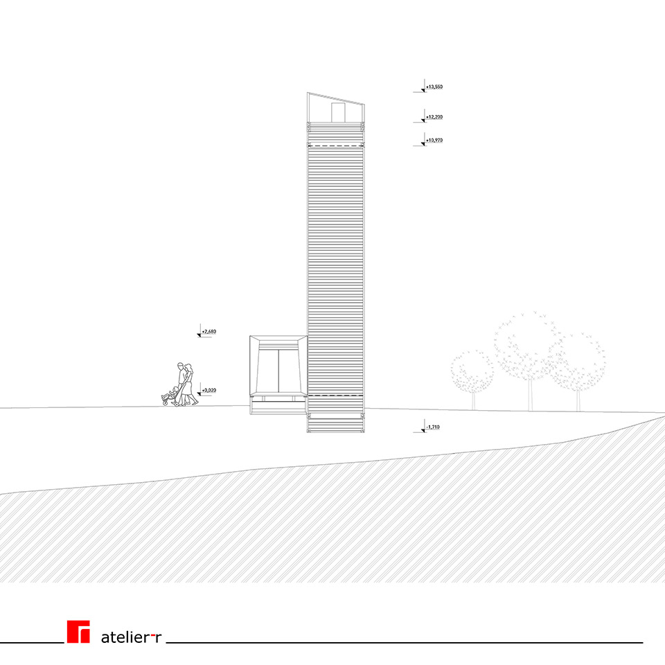 “旅途的目的地”(Destinations of Journeys)是利托米什尔市发起的一项长期项目。市政府邀请曾获捷克建筑奖的事务所设计一处位于城郊的景观设施,以激励市民与徒步者走向户外。城市西北边缘被选为最具吸引力的选址。在这里,徒步者可以尽览城市景观,包括主要地标。傍晚时分,西侧阳光为此处赋予一种近乎魔幻的光影效果。我们的目标是通过一座瞭望塔强化这一场所的魅力,使人们从全新的视角观赏这座城市。该结构的概念基于业主需求与预算限制而制定。我们达成共识:建筑应具备环境友好性,并且整体方案应具备可逆性,即未来可将场地恢复至原始状态。
