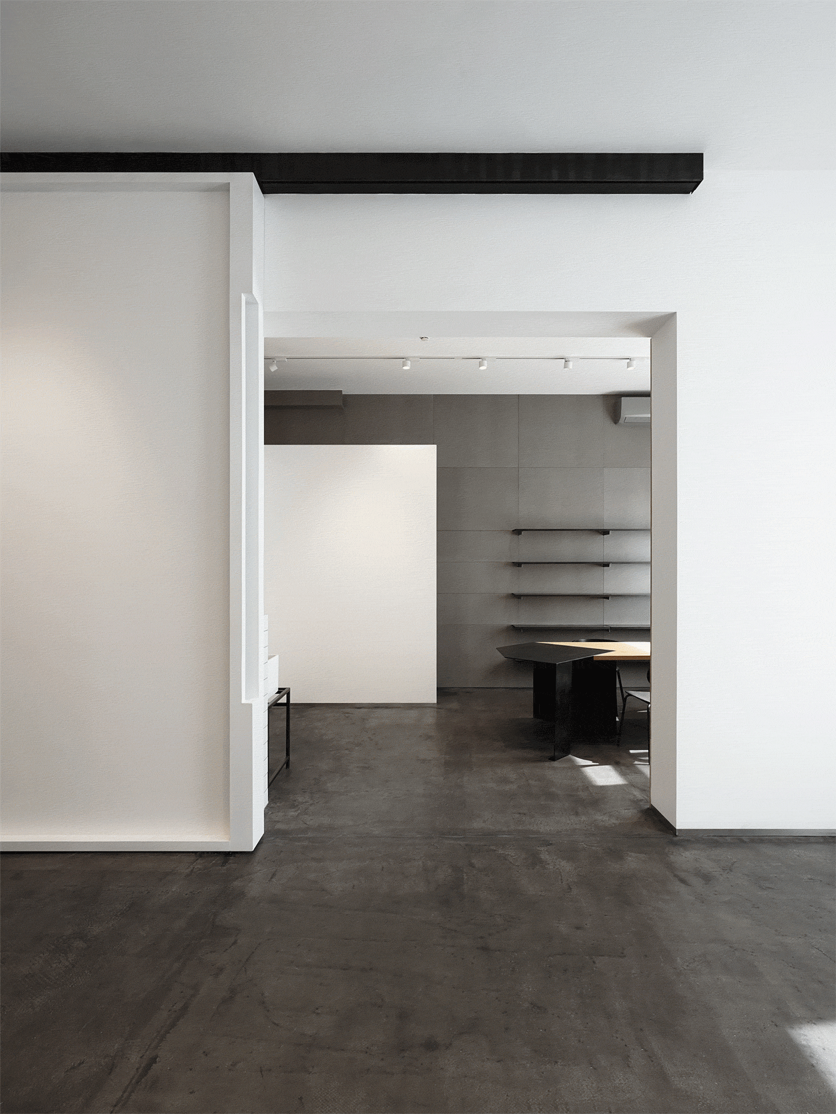 The material strategy emphasizes the intrinsic qualities of materials, using a coherent palette to connect the three spaces. Terrazzo flooring with fine aggregates establishes a neutral and evenly luminous ground. Hot-rolled steel retains traces of industrial fabrication while allowing precise detailing. Strawboard, through geometric stacking and composition, forms expressive display volumes while introducing warm textural depth. This juxtaposition of materials—honestly expressing industrial character while establishing dialogue between surfaces—shapes the project’s restrained spatial atmosphere, allowing the materials themselves become active participants in the spatial narrative.