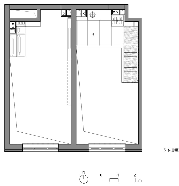 The artist studio serves as a container for creation, daily life, and social interaction—achieving remarkable flexibility and programmatic richness within a limited footprint. The project adapts two adjacent, narrow, north–south oriented residential units typical of the community’s layout. By removing non-load-bearing walls, a 2.4-meter-wide visual corridor was created, extending the east–west sightline. The original 3.7-meter floor height provides a comfortable scale for artistic production while also allowing the insertion of a partial mezzanine within the living area. A movable wall system glides through the center of the space, flexibly separating working and living areas. The system can be replicated as needed, functioning as both artwork storage and display while enabling the artist to work on multiple pieces simultaneously.