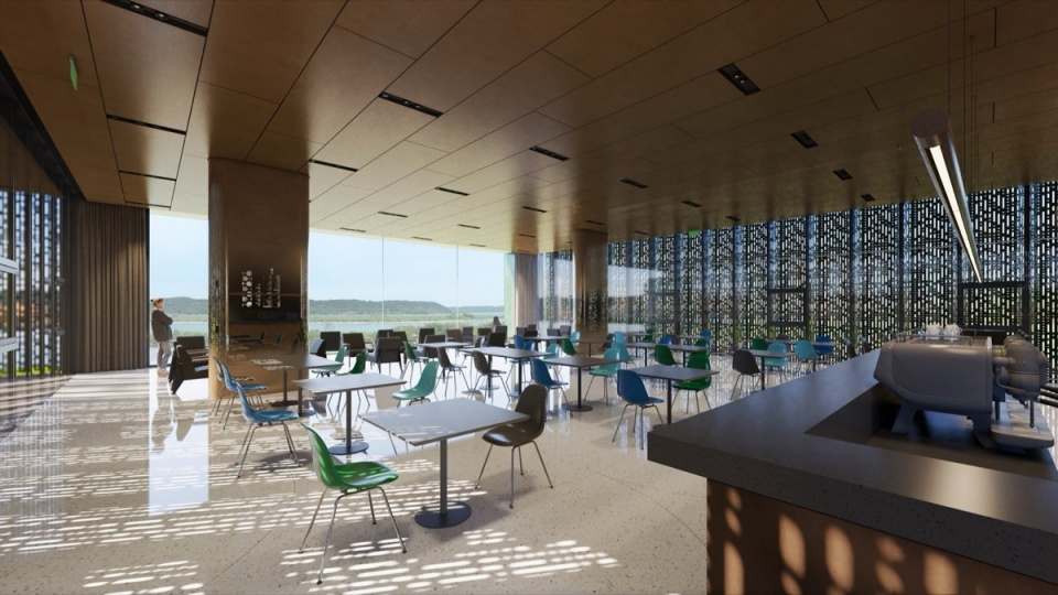 博物馆在设计上整合了被动式与主动式的节能策略,以构建低碳且具韧性的环保节能建筑体系。地源热泵系统和水蓄冷及蓄热系统的同时运用,可以极大地减少运行费用。青铜盒子屋顶设置太阳能光伏发电系统。生活热水采用空气源热泵及太阳能板,新风系统利用热回收。同时,项目建立了水循环系统,收集和再利用雨水,并采用酒厂生产中引流的涪江江水用于水池景观,充分利用了场地内及周边既有的基础设施和资源。舍得文化博物馆正在紧锣密鼓地施工中,预计将于2027年春季完工。该项目已获2025 Active House Award一等奖、un Design Awards铂金奖。