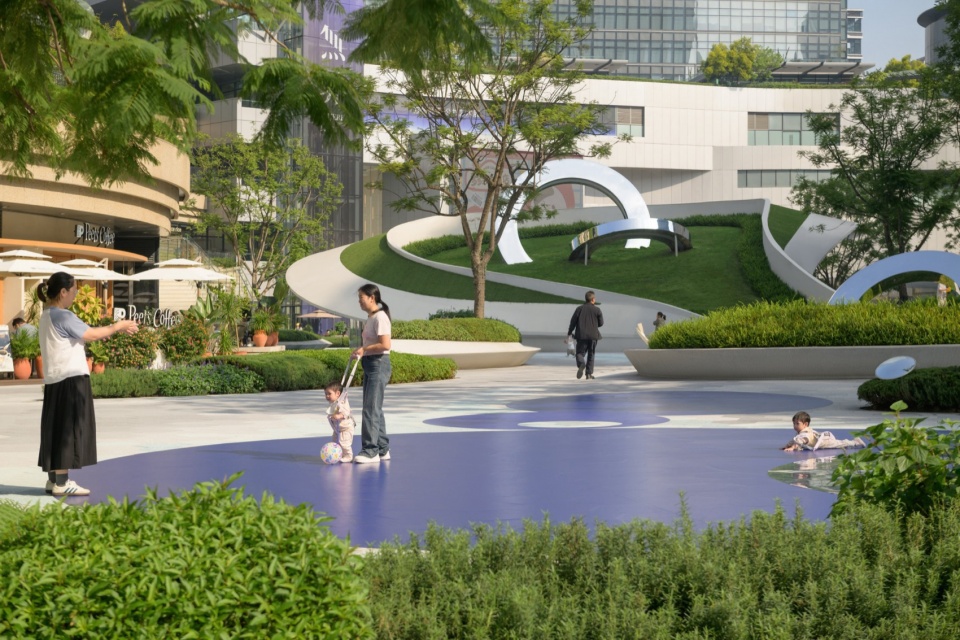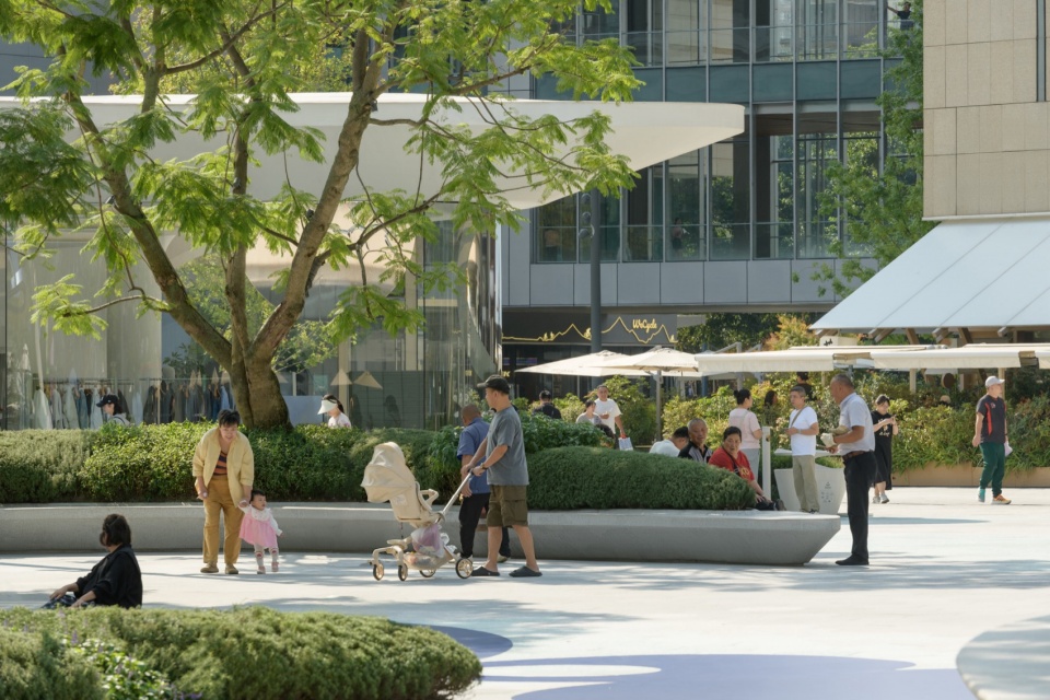 这些“活动容器”之间相互交融,没有明显的界限。我们透过铺装、绿植,水景等元素,引导人们前往不同区域。随着景观空间的转变,使用者的行为与心境也在发生变化,处处都存在着新奇和惊喜。事件与活动的发生,使中心广场成为了城市里一座开放而包容的场景体验复合体。