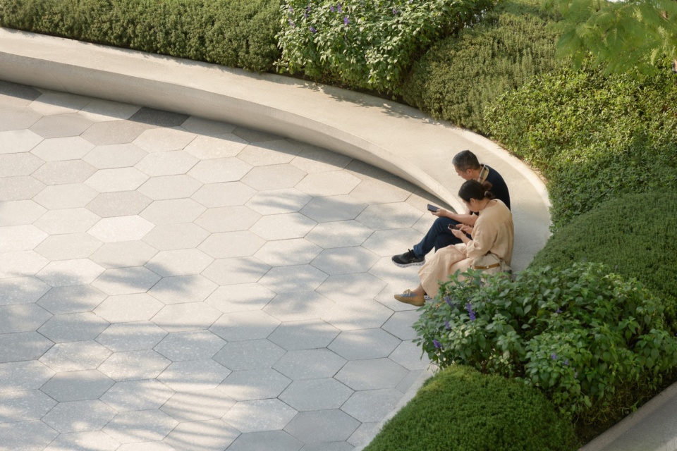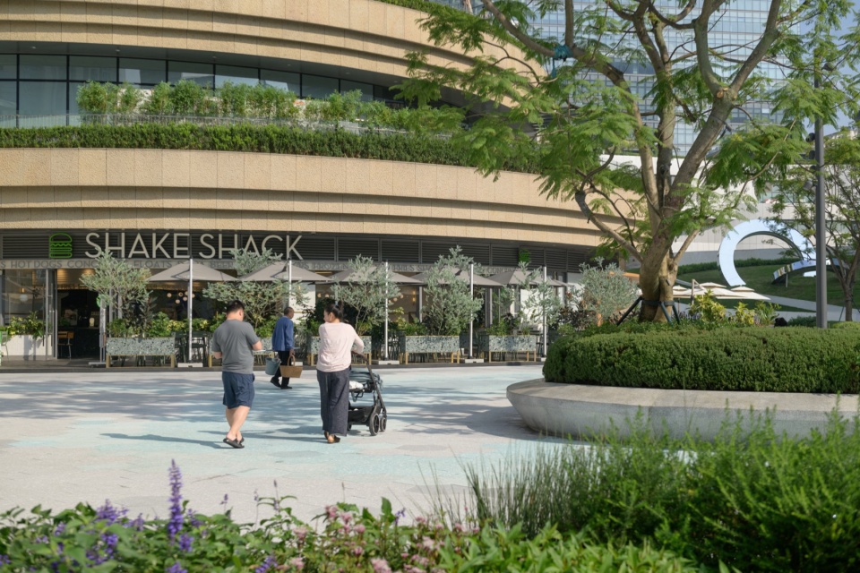 Along the F&B delicacies frontage, the garden alley is designed to be relatively friendly in scale with outdoor dining, providing exclusive experiences for people to casually sit down and social among the garden greenery along the street.