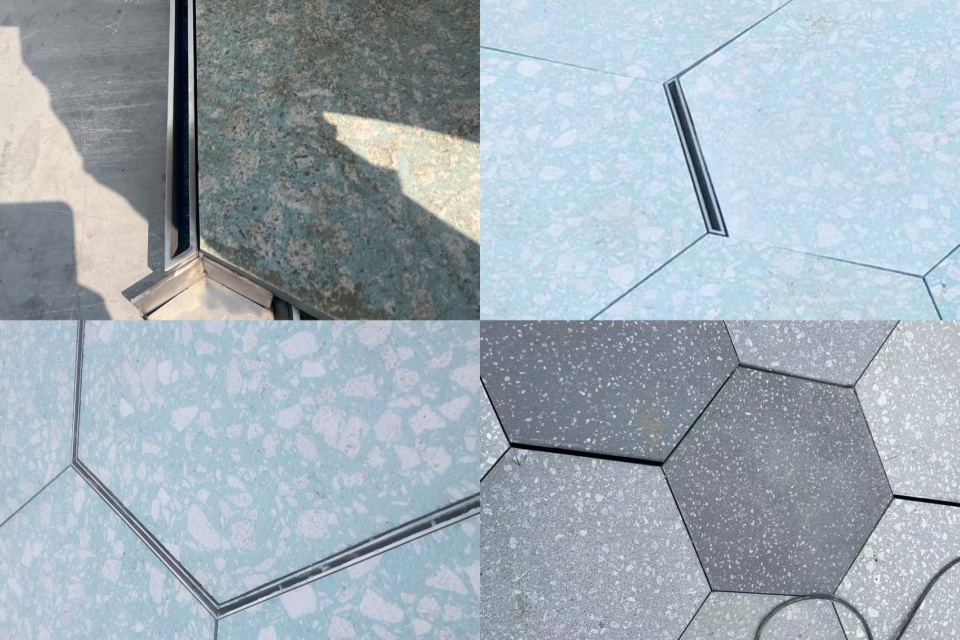 为了消隐排水沟对铺装整体性的破坏,设计团队针对性地做了隐蔽式排水设计。