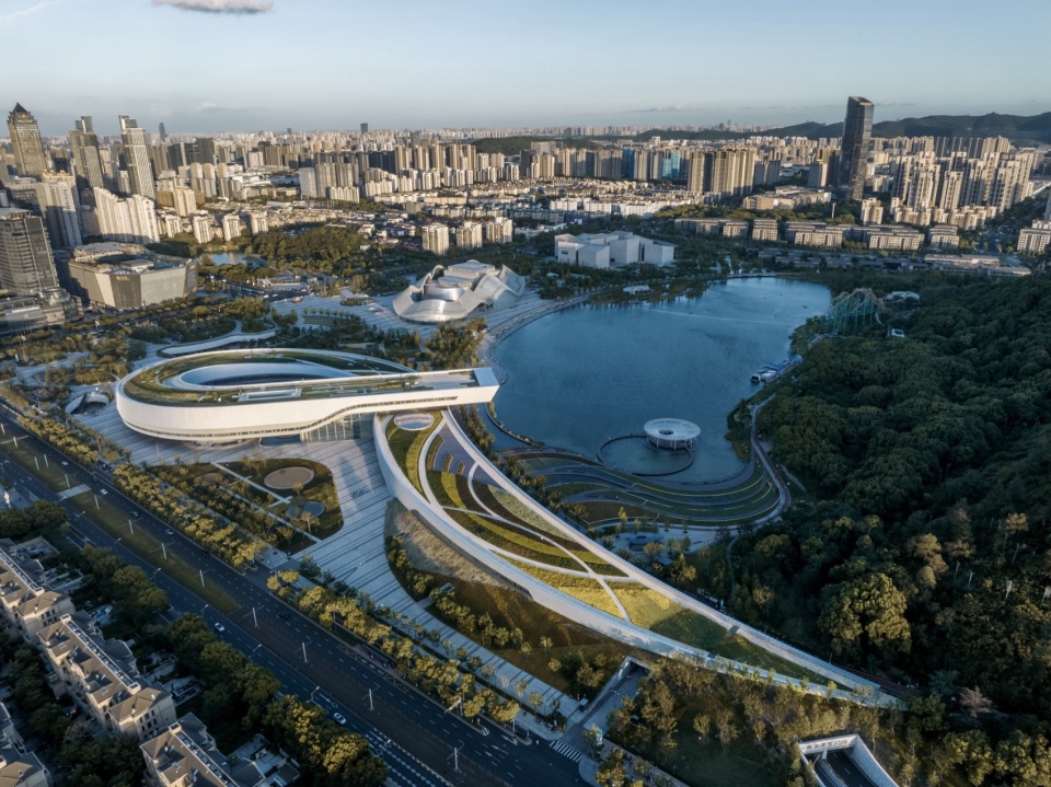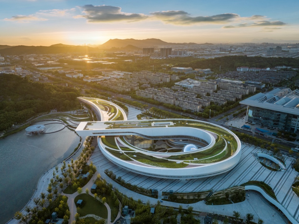 苏州素有园林之城与丝绸之乡的美誉,自古便是文化、匠心与山水的交融之地。苏州科技馆通过其富于想象力的设计致敬这一历史文脉——建筑宛若一条流动的丝带,自滨水绿意中自然生长绵延。