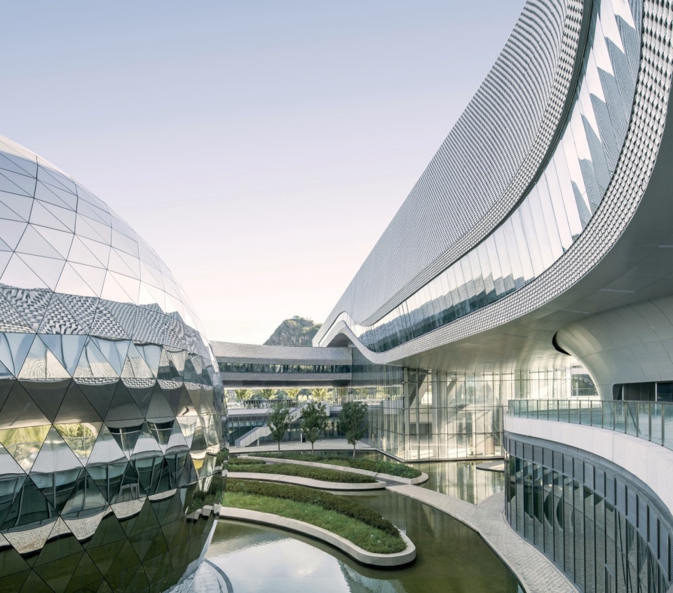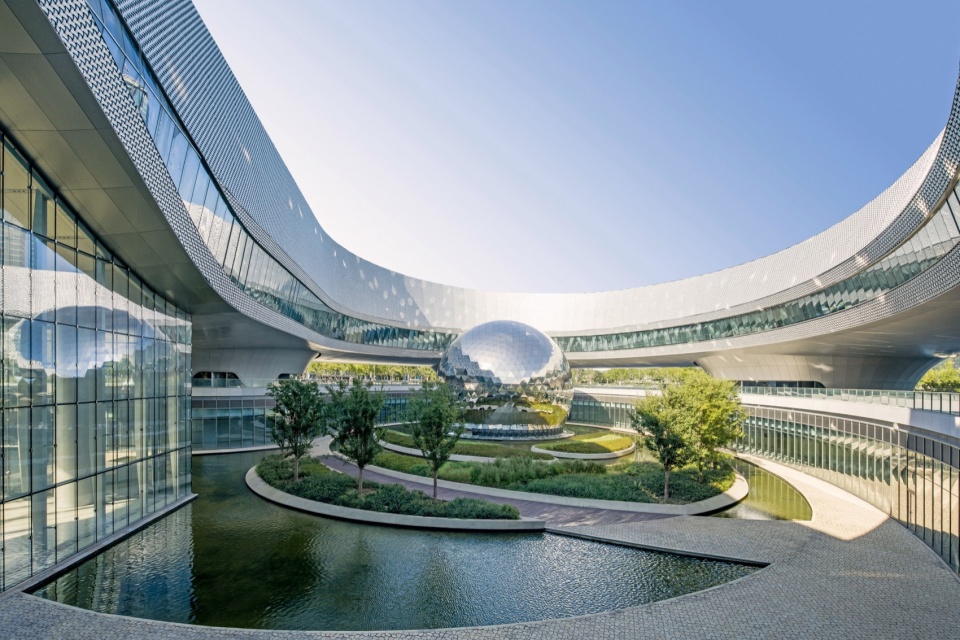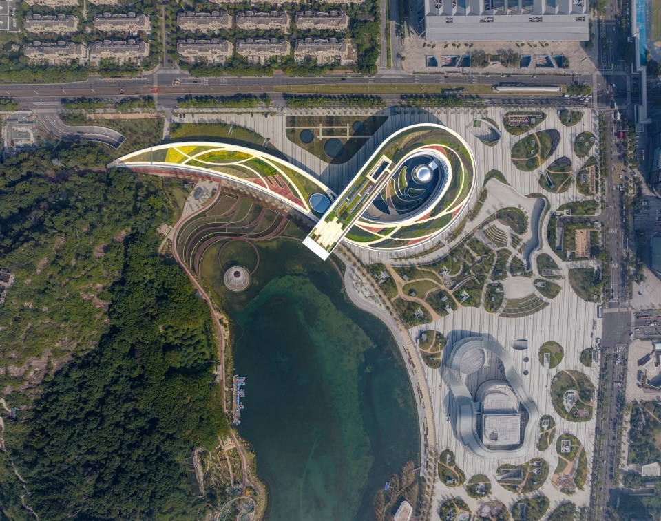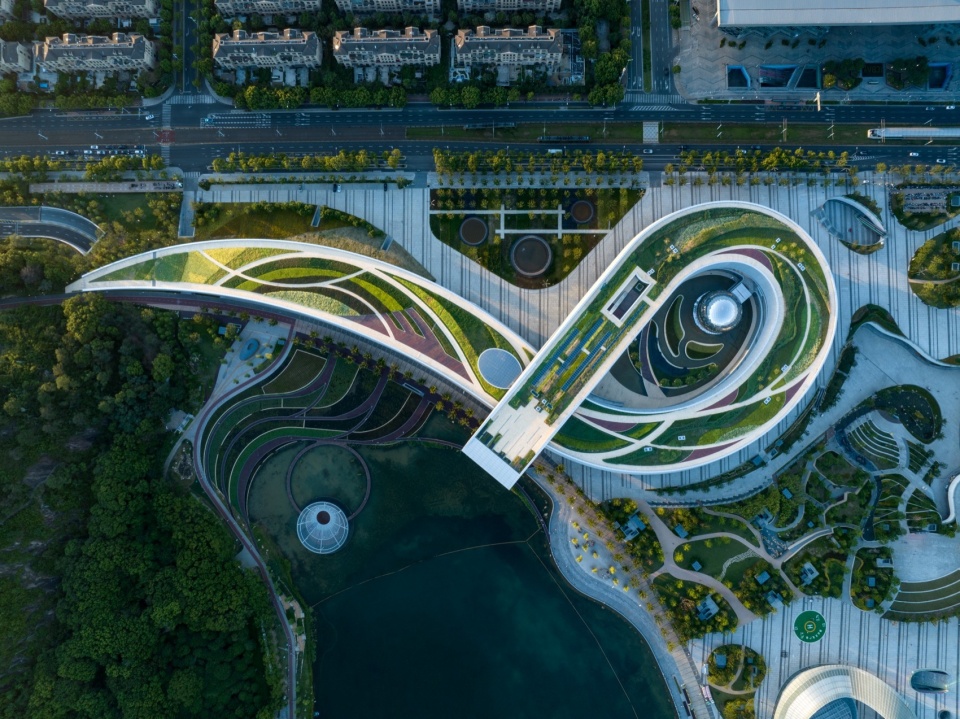 ▼苏州科技馆以“玉如意”为灵感的建筑形态,the architectural form of the Suzhou Science and Technology Museum, inspired by the jade ruyi
