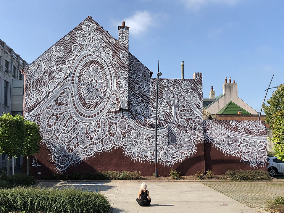Work on the mural has already begun. By the end of March, a large-scale piece inspired by NeSpoon’s characteristic lace motif will take shape in DOMOTEKA’s main hall. For the past 15 years, the artist has been translating these traditional patterns into various environments through monumental murals, ephemeral installations, ceramic objects, and street graffiti. In this way, lace designs—often created by anonymous craftswomen hundreds of years ago—gain new life in entirely new contexts.