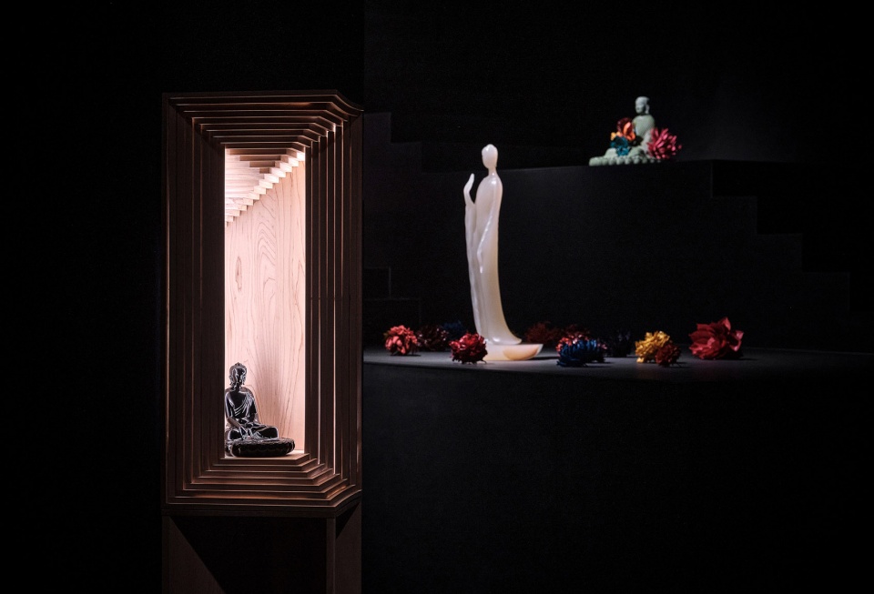 As the exhibition curator Youpo commented: “The ‘VOID’ exhibition space designed by TEAM_BLDG is like a circular staircase without beginning and end. Designer Xiao Lei perfectly utilized the height of the space to build the site in a staggered manner, providing the viewers with a variety of viewing angles: sometimes the Buddha statue is in the high place; sometimes in the low place; sometimes at the eye level. In the “void” exhibition space, people are the viewers and also the view, so to speak, ‘being in it and not knowing what it is, leaping out the picture and being enlightened’.”
