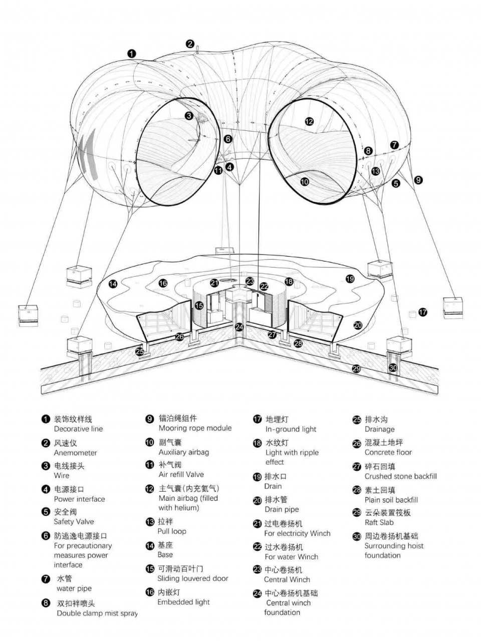装置的最终呈现,依托于多个系统的协同整合,涵盖囊体、膜材、管线、喷雾、灯光及智能化控制等关键系统的统筹协作,使设计概念得以完整转化为空间体验。