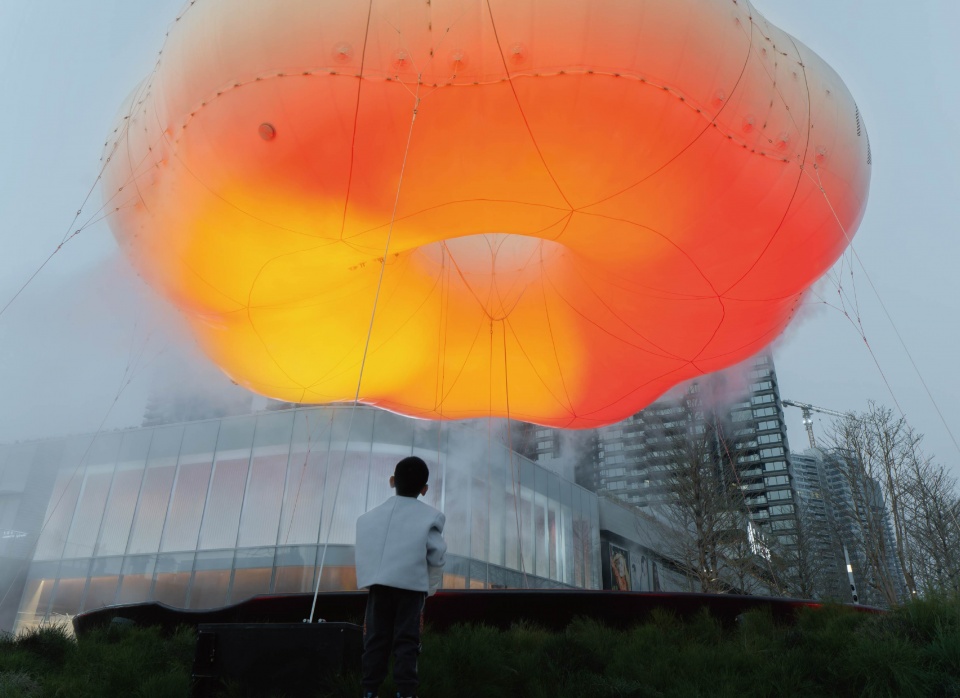 通过创新的囊体结构与智能控制系统,装置实现了物理形态与动态体验的完整融合——日间喷雾调节微气候,夜间光影营造梦幻氛围,以技术精度呼应着“自在悠活”的空间哲学。其多尺度的可识别性与交互性设计,使商业入口超越了传统标识功能,成为连接城市、品牌与情感体验的系统性媒介。这不仅是一次艺术装置实践,更是对“下一代慢商业”范式的空间回应——在消费理性的时代,以场景营造创造情绪价值,以空间叙事唤醒生活想象,最终让商业空间真正成为“城市的出口,生活的入口”。