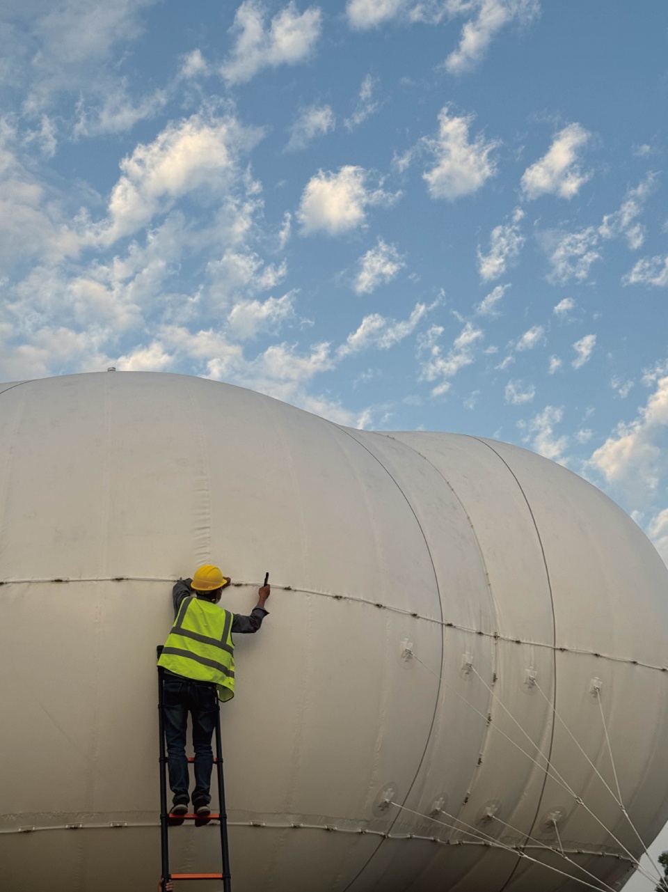 The installation’s light and expressive appearance relies on a coordinated internal system. To adapt to the site’s day–night temperature variations, it continuously monitors air pressure and dynamically adjusts the ratio of air to helium, repeatedly inflating and deflating throughout the day to maintain the stability and fullness of the membrane form.