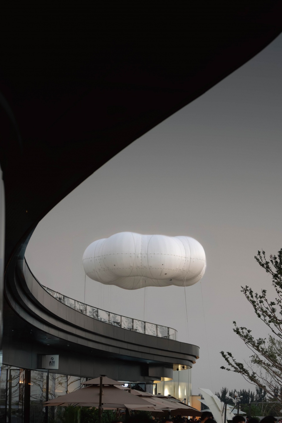Following this “breathing” rhythm, the cloud installation does not remain at a fixed height but appears to possess its own life, gently rising and falling between 3, 8, and 20 meters at different times of the day. The coordinated control between the central and peripheral hoists enables such a dynamic movement. Complemented by a timed misting system, the installation evokes the sensation of a real cloud, bringing a refreshing atmosphere to the entrance plaza.