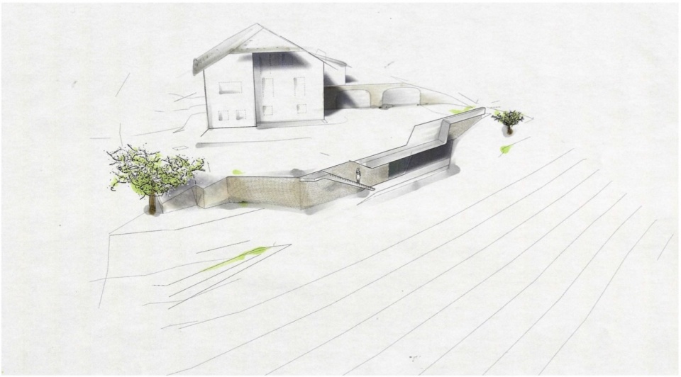 扩建部分以克制的方式融入周围地形,并嵌入自然坡地之中。在这一以分散式传统农舍为特征的乡村景观背景下,这一单层体量顺应坡地等高线自然展开。