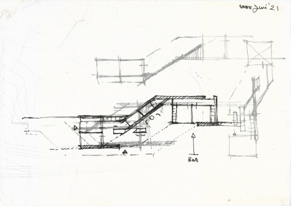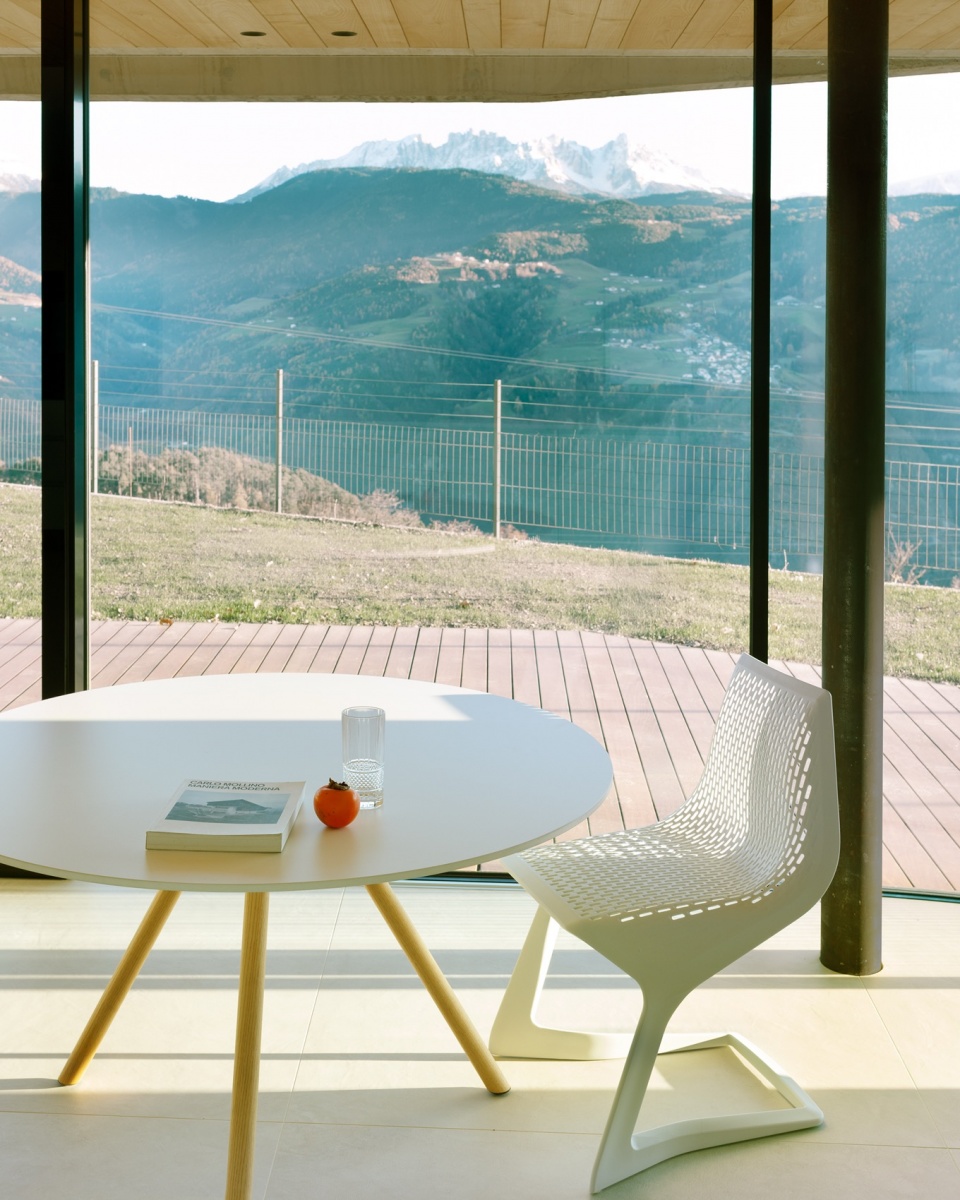 The remaining, from local building rules permitted building volume is strategically located below the existing house, adjacent to an existing retaining wall. A wide, unobstructed view opens up, revealing a stunning panorama onto the Dolomites.