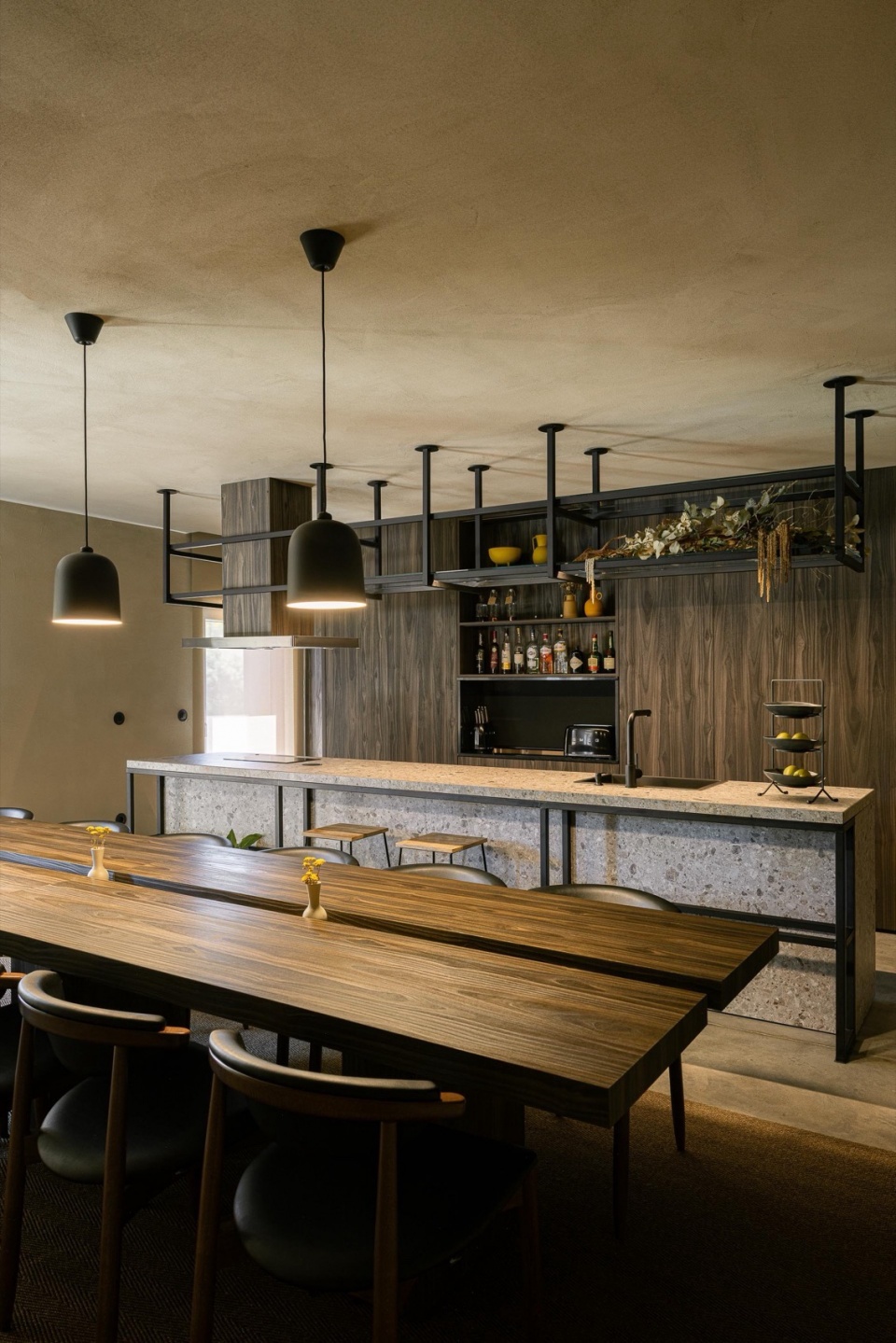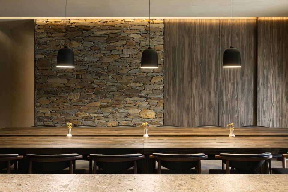 某种意义上,场地与保护区限制带来的挑战,反而成为项目最重要的契机。建筑体量通过片岩材料延续地方传统,同时以外露混凝土形成大胆的悬挑体量,使整体呈现出鲜明的当代性。这些悬挑结构将建筑向群山敞开——框取远景,引入光线、气息与声音,让室内空间完全沉浸于这片独特自然环境的节律之中。