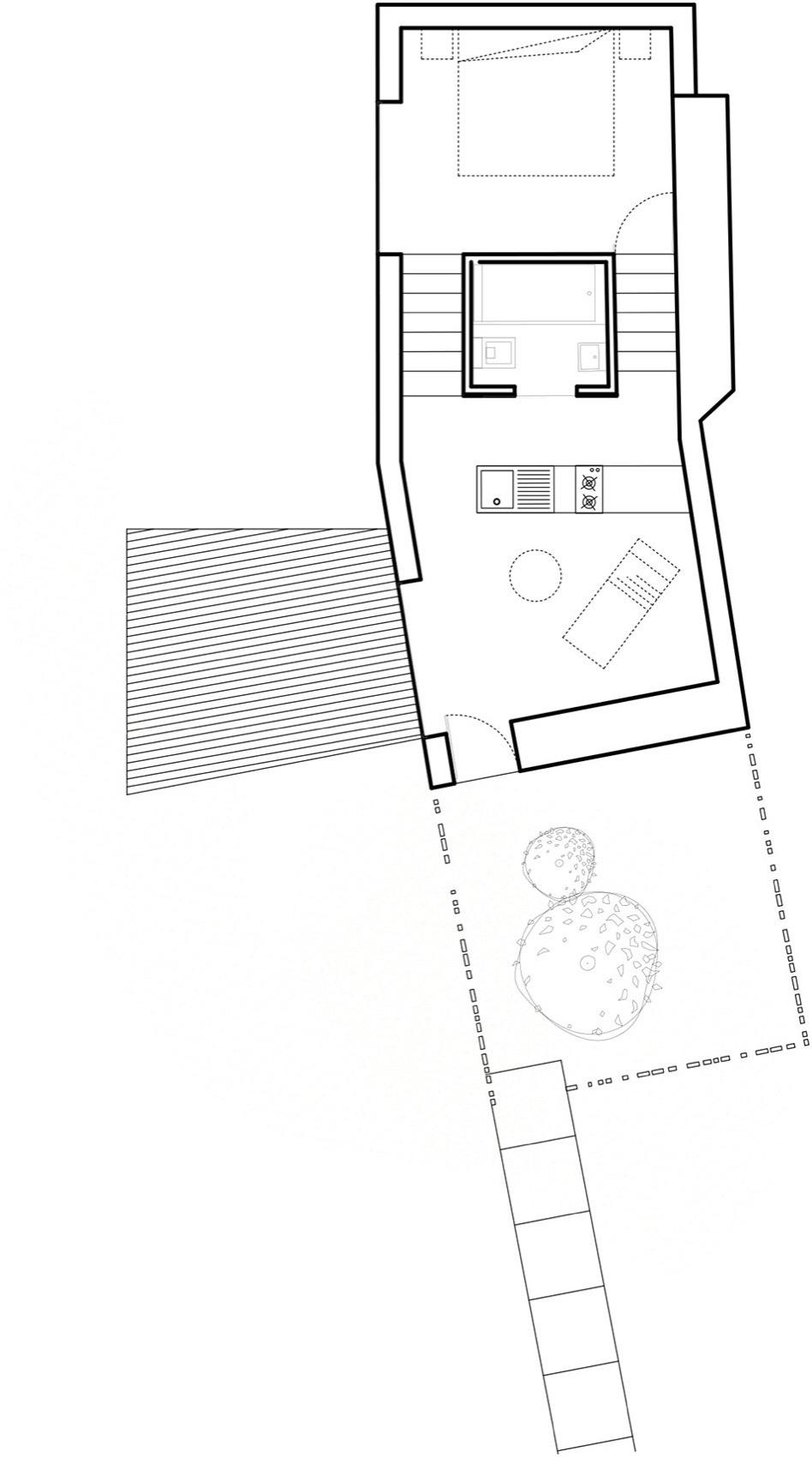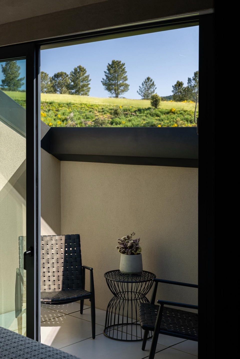 Inside, the spaces still carry echoes of the former houses, yet they are transformed — redefined by new relationships, unexpected transitions, and a refined spatial choreography. Each hotel accommodation unit, whether in the main house or the separate villa, is conceived as a unique world, offering its own intimate way of inhabiting the landscape.
