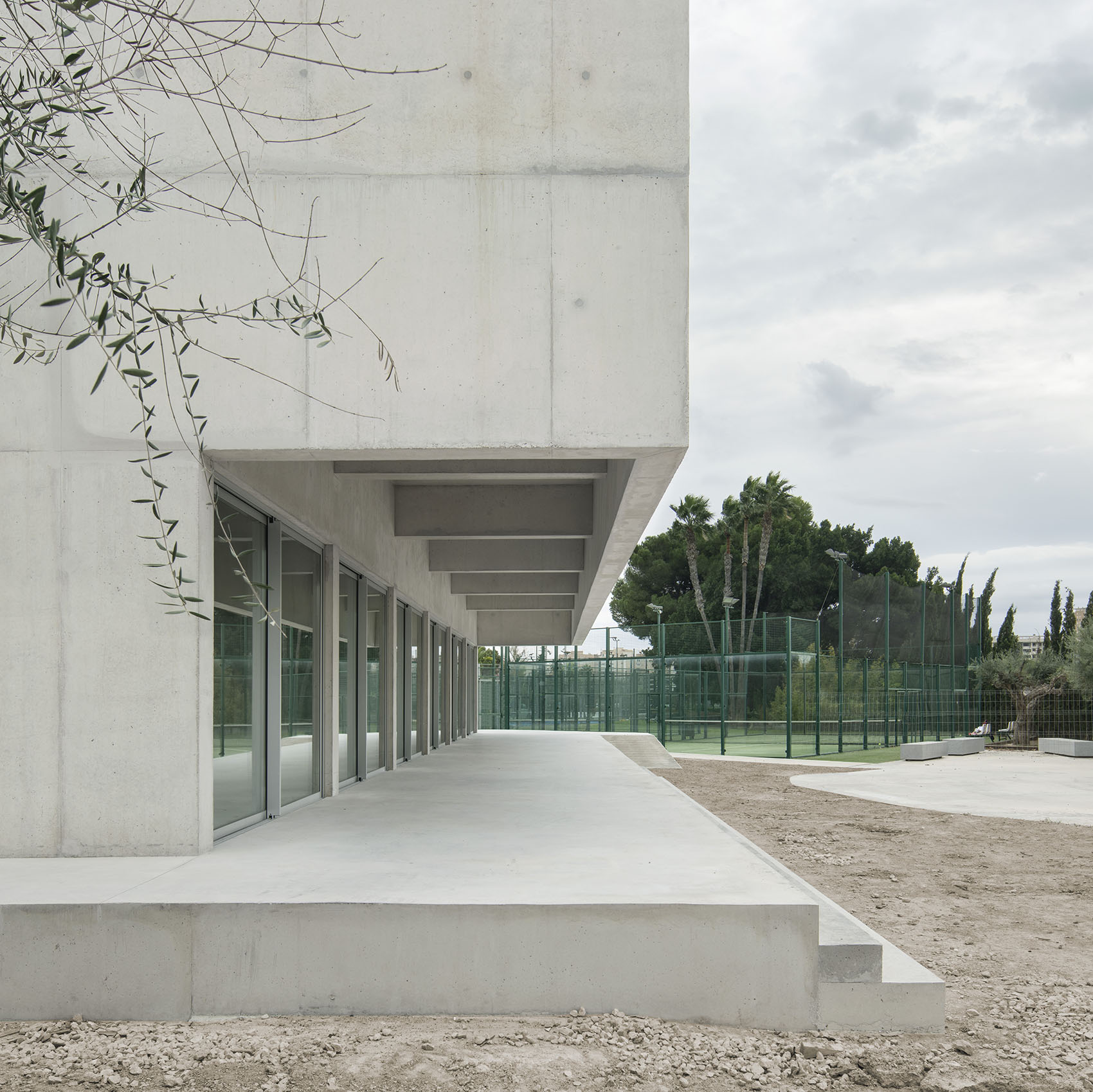 The intervention consists of the extension of a multipurpose sports building by occupying the second of the existing squash courts, completing the H-shaped geometry defined by the original concrete walls. The project recovers and enhances this pre-existing structure, using the same material in the new construction to ensure architectural integration and continuity, while preserving its memory.