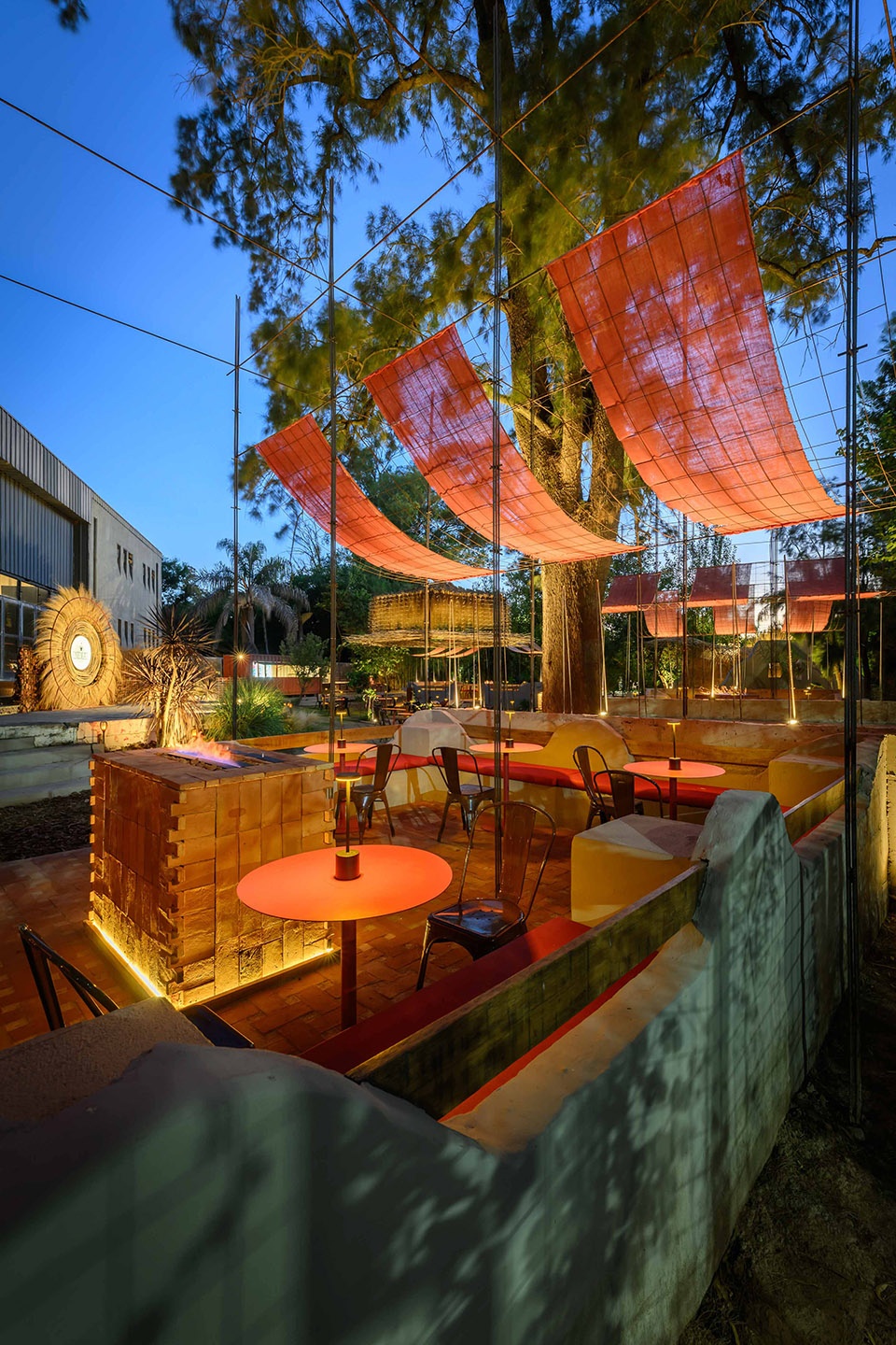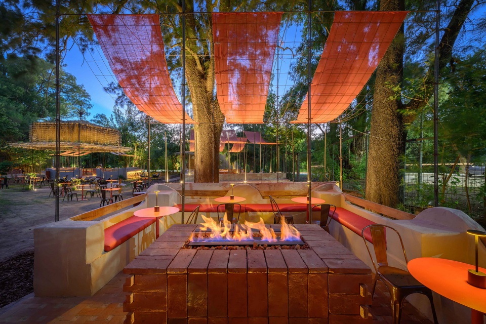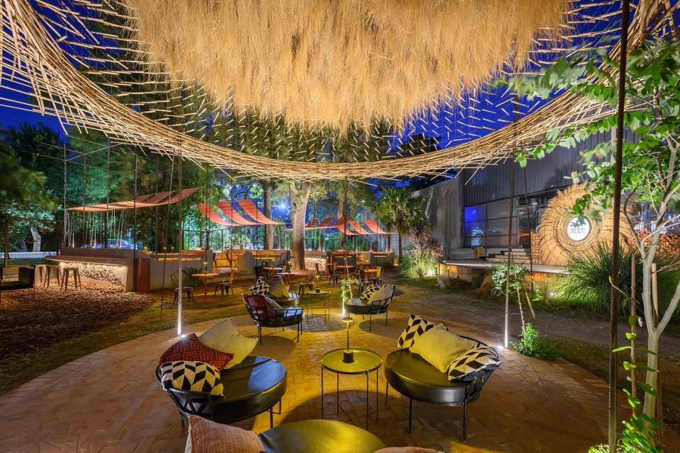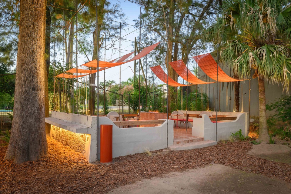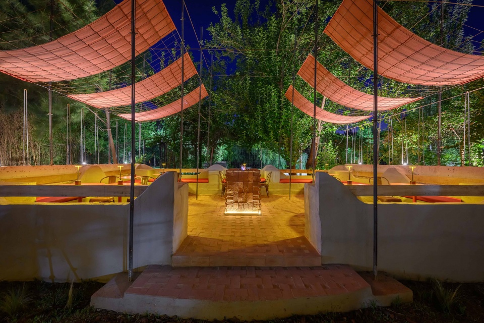 INDIAS 将一处既有结构转化为一座约1000平方米的露天夜间餐饮基础设施,通过三种空间探索组织为一段具有地域性的序列: