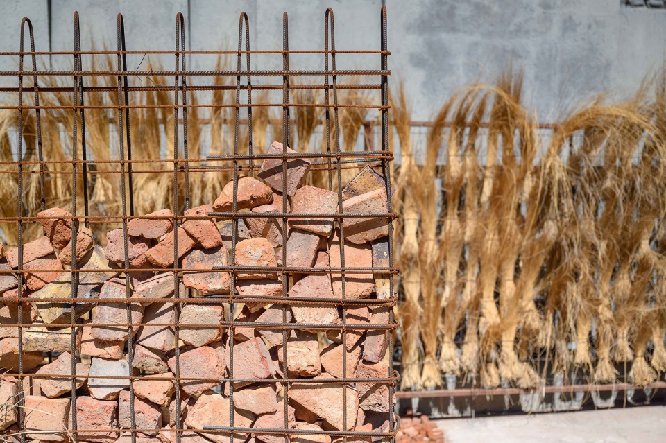 砖并非被精确排列,而是以堆积的方式出现,如同承载碎片的墙体,近似一种考古式的姿态。钢并未被隐藏,而是以“缝合”的方式显现自身。混凝土不被打磨,而是直接浇筑成形。