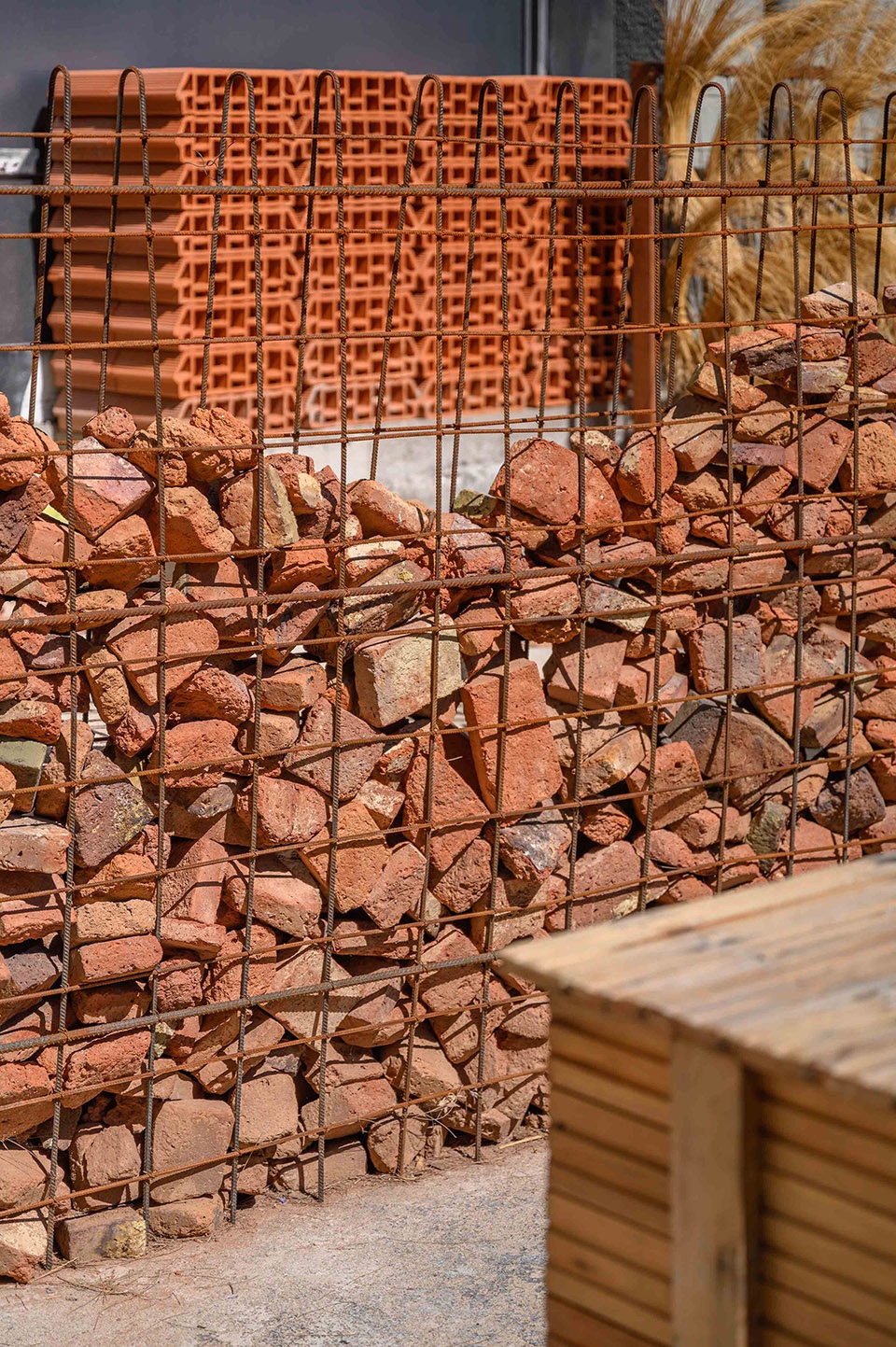 ▼以堆积的方式出现的红砖,accumulated red brick