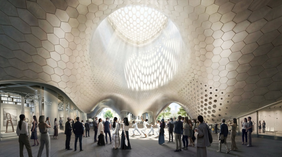 一个宏大的天窗将自然光引入公共广场,这里被构想为“艺术论坛”,全天24小时向公众开放,市民与访客可自由穿行与停留。艺术作品、临时装置与公共活动将在此激活空间,使日常的城市流动转化为文化体验。
