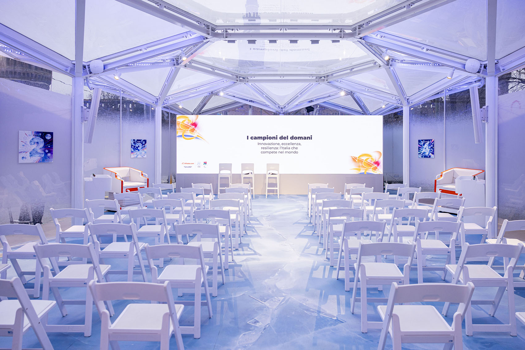 After the Winter Olympics Games, with the arrival of spring and the melting of ice and snow, Sforza Castle Square returns to its usual appearance. Beyond the fantastical experience and memories, Alibaba Wonder on Ice leaves no trace behind. The snowflake-like modular structure will drift to more corners of the world, continuing its story and legend.