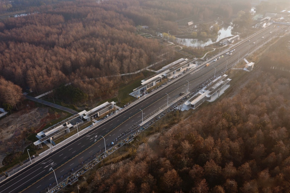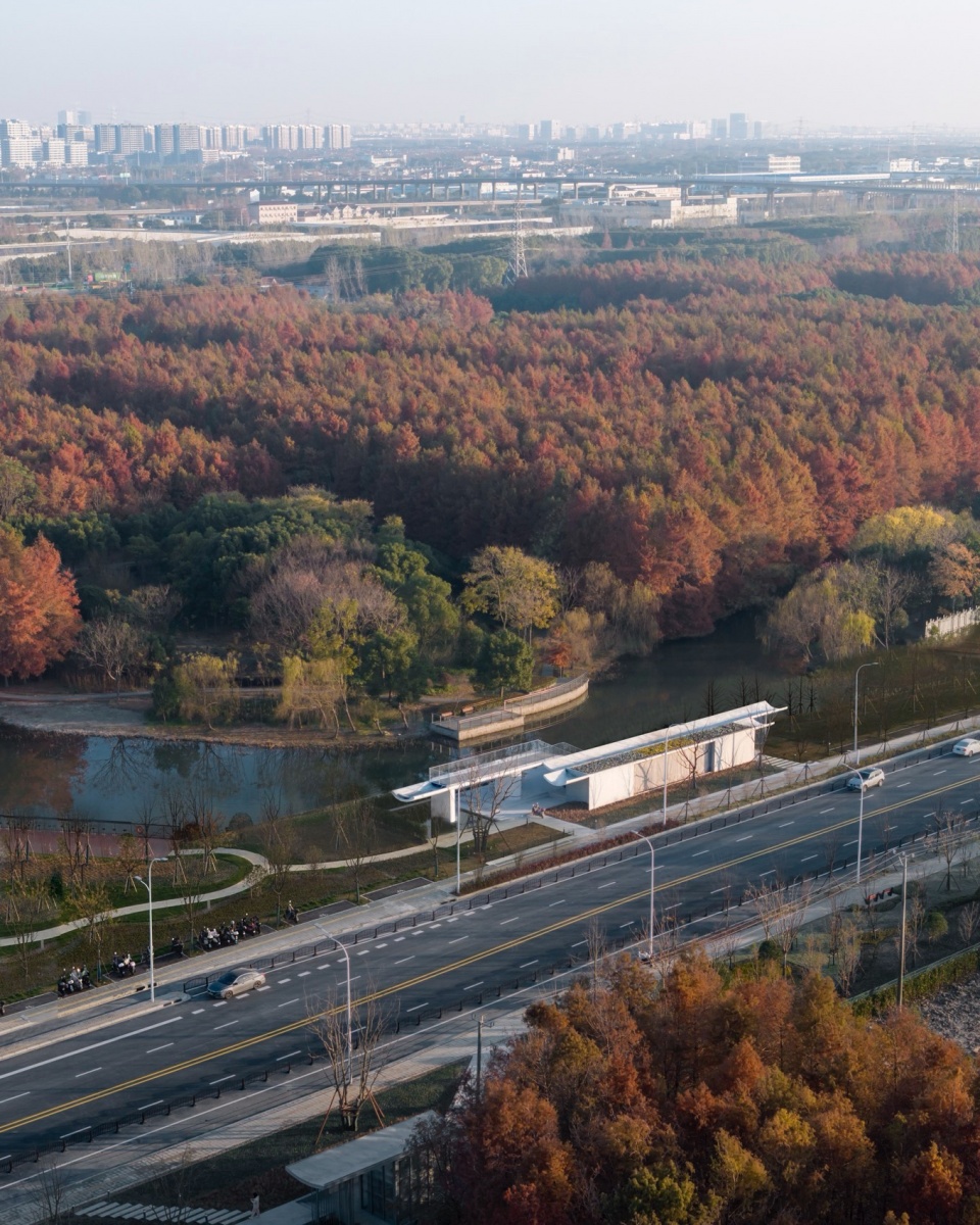 In the shaping of individual structures, the design adopts a light, modest, and permeable approach in response to the site’s low-lying terrain, flowing waterscape, and groves of metasequoias. From this emerges the image of “floating pavilions above the wetland.” The station and its ancillary facilities are conceived as lightly placed structures set within the wetland and woodland: while meeting functional requirements, they create nodes for shelter, pause, transition, and viewing. Visually, they remain as open and transparent as possible, maintaining a constant visual connection with both the city and the wetland landscape.