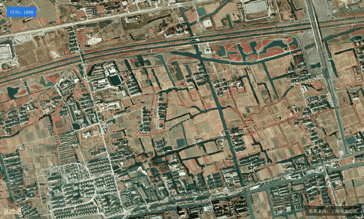 ▼横沔公园片区的城市肌理演变,Historical transformation of the Hengmian Park Area.