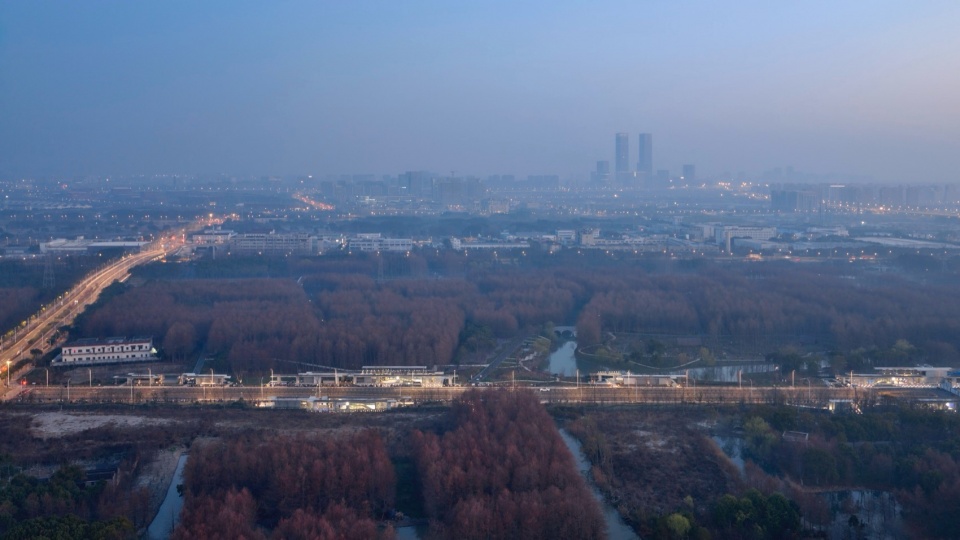 The Hengmian area first emerged as a waterside settlement in the Tang Dynasty and flourished into a prosperous market town during the Ming and Qing dynasties. Its landscape of dense waterways, interwoven woodland, and farmland has endured to the present day, gradually evolving into one of Shanghai’s most distinctive wetland park belts. In 2019, construction of the Shanghai Airport Link Line began in phases. As the southern gateway to Zhangjiang Science City, East Kangqiao Station is located along the southern edge of the Hengmian green belt, serving nearby residents and workers while also acting as an important entry point to the area’s wetland parks.