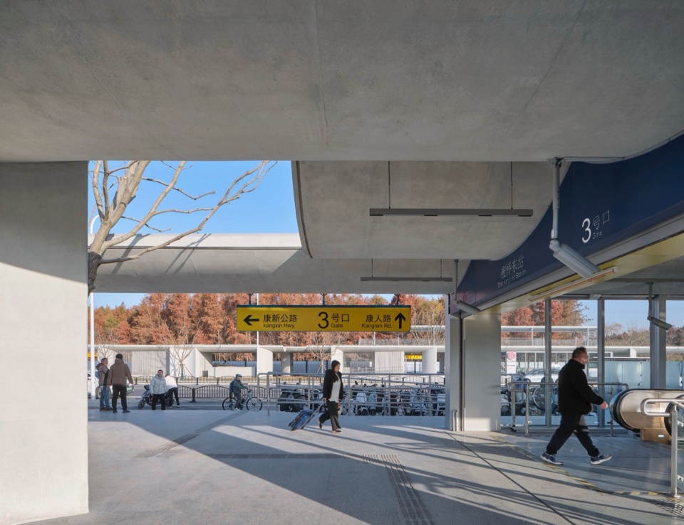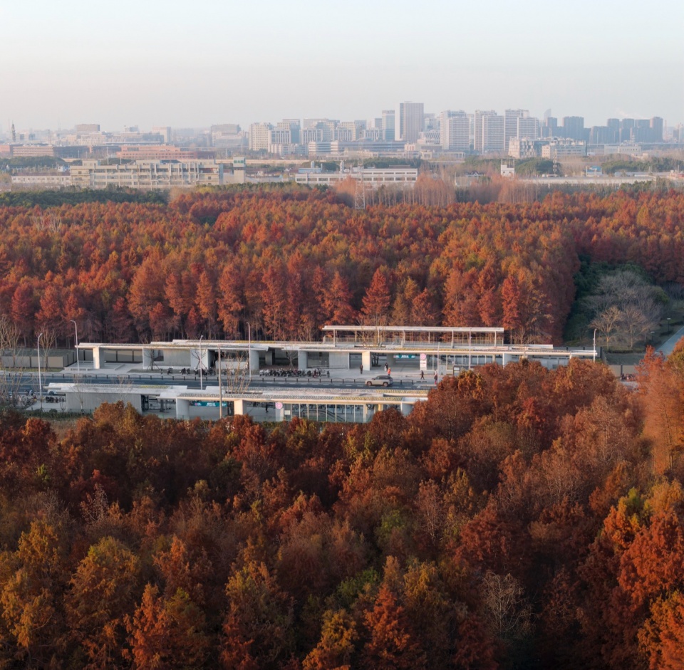 当通勤、游憩与观景在同一处场所中自然交汇,康桥东站也由此超越了单一的交通属性,成为连接城市与湿地、日常与风景的开放载体。它栖息于水畔,也延展至林梢;既回应城市基础设施的效率诉求,也保留了湿地边界的松弛与诗意。于是,基础设施不再只是割裂场地的技术系统,而成为生长于自然肌理中的公共场域,在城市持续生长的过程中,为人与景、城与景之间重新建立更柔和、更持久的联系。