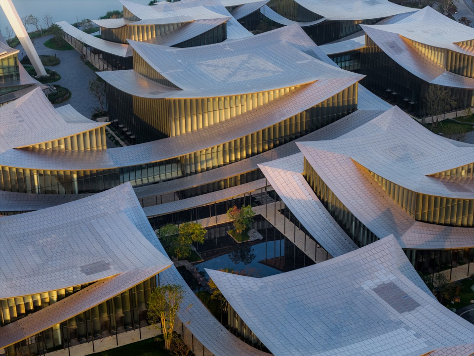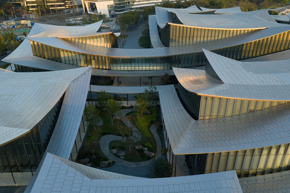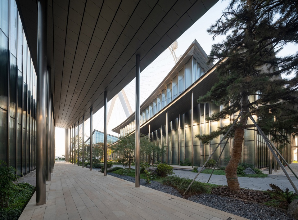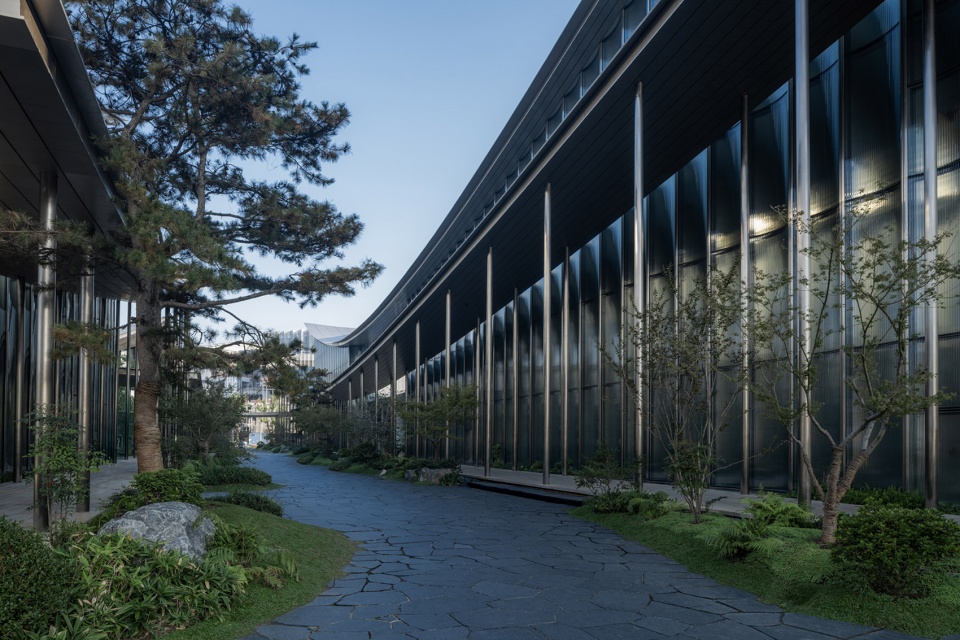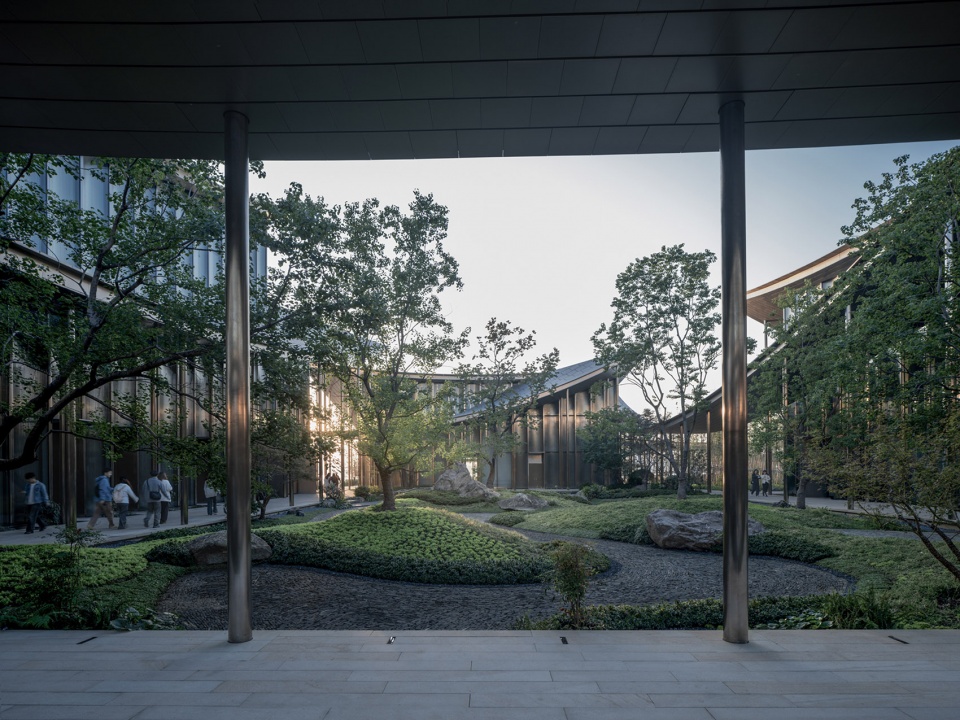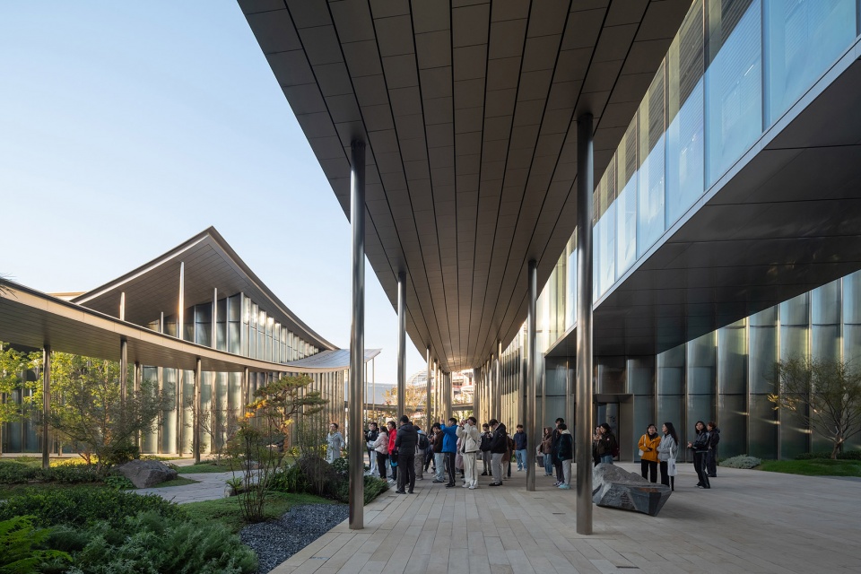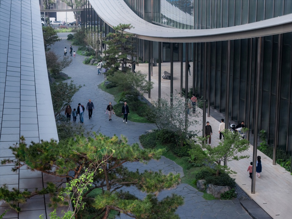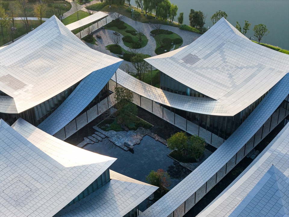The design extracts the spatial prototype of “deep, layered courtyards” from traditional gardens and reinterprets it with contemporary techniques. The building’s covered walkways flow lightly like “silk ribbons”, outlining the building’s contours and inadvertently enclosing a series of intimate, interpenetrating courtyard spaces of varying scales.