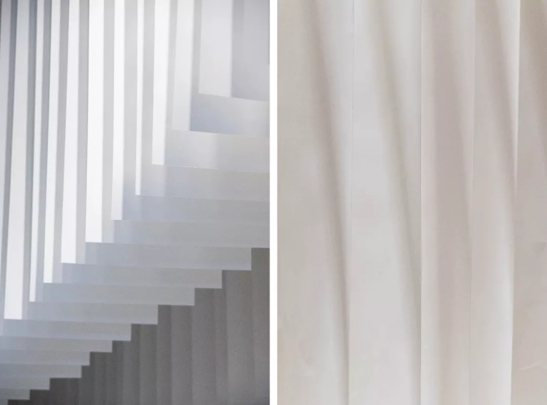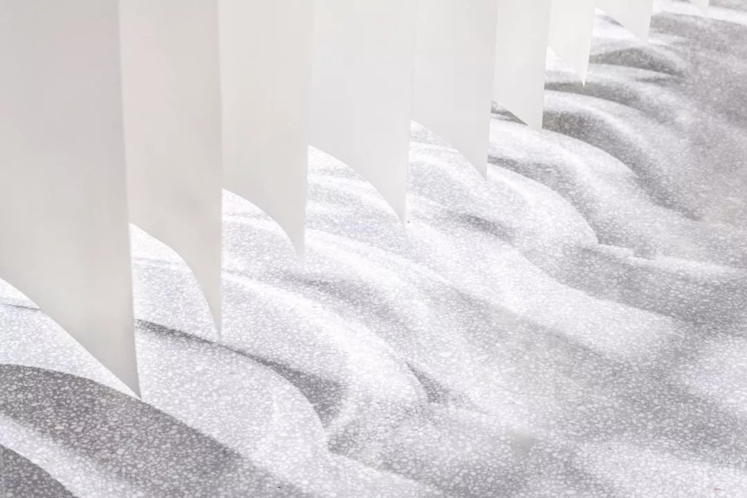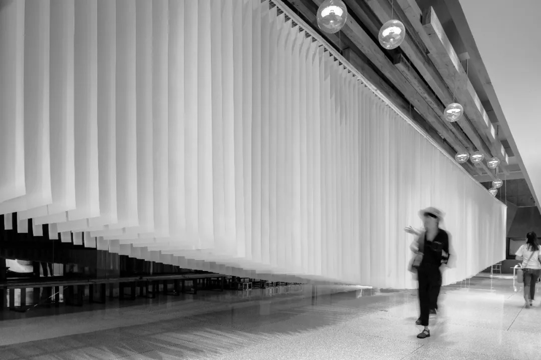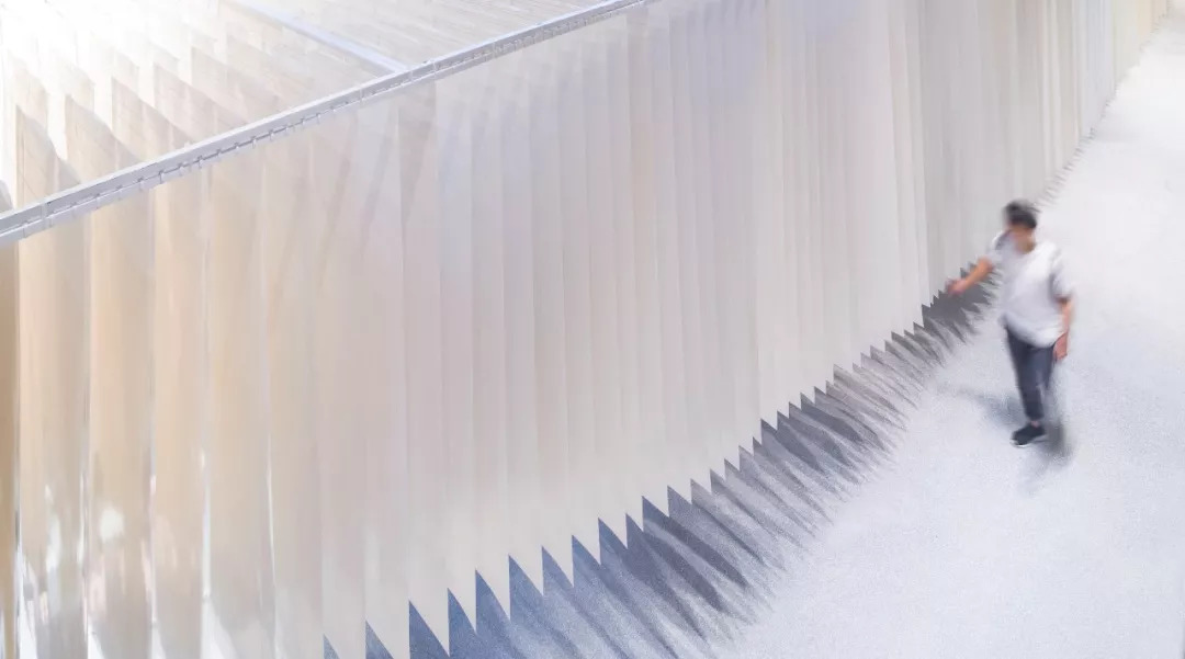 Like all shopping malls, this nearly 30m long device faces the challenge of construction only at night. Mur Mur lab has designed a light structure for easy installation for this device, which is divided into structural units with 24 sections of metal grille and suspended on the original wooden frame of the atrium. All papers are connected to the steel cable in the simplest way, and the installation is completed in three nights. The breeze stirred the gap and rubbed the pages. Like all the designs of Mur Mur lab, after hard work, I still hope to present a poetic moment. After all, there is only one kind of heroism in the world, that is, to recognize the true face of life and still love it. After all, we came to the world to see the warm sun.