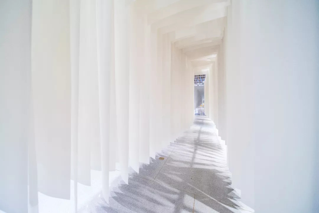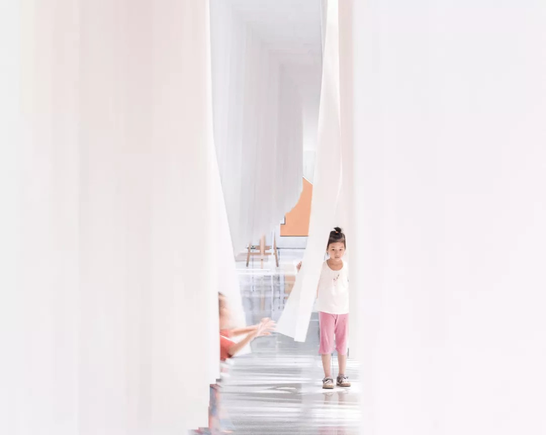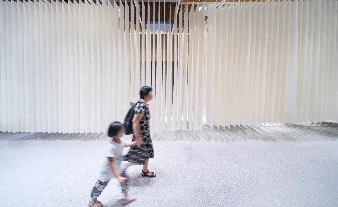 552 pieces of paper are used to build a passage, and the narrowest part is only enough for one person to pass through. Through this one-man passage, light and shadow linger, and the pages whirl. The thickness of the pages is like a castle, filtering time and blocking sound, so that people are not disturbed by the outside world. Through this passage through the atrium, I hope you can usher in a new life of yourself. Then, you can read better. All paper can be recycled after the exhibition.