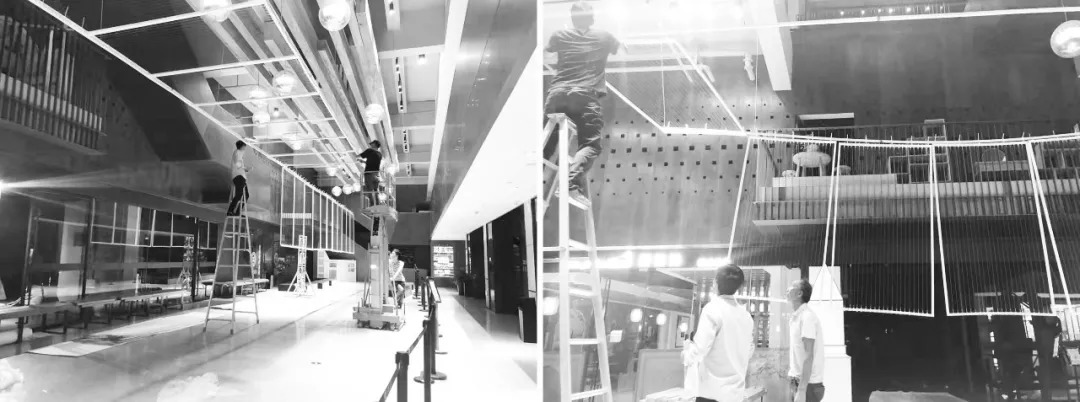 同所有的商场一样,这个近30m长的装置面临只能夜间施工的挑战。Mur Mur Lab为这个装置设计了便于安装的轻质结构,拆分成24段金属格栅的结构单元,悬挂在中庭的原有木框架上。所有纸张均通过最简易的方式与钢索连接,三晚完成安装。微风拂动间隙,页页摩挲作响。就像Mur Mur Lab所有的设计一样,辛劳忙碌之后,依然希望当下能有诗意的瞬间呈现。毕竟世界上只有一种英雄主义,就是认清了生活的本来面目,并且依然热爱它。毕竟我们来人间一趟,想要看看暖阳。