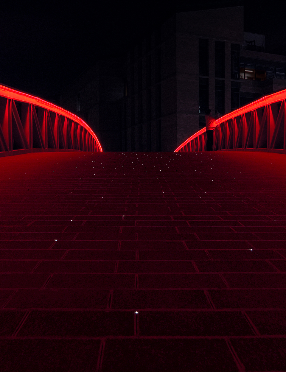 The design is intended to create The bridge introduces a new urban strategy for Jingdezhen—subtly repairing the rift created by traffic infrastructure while catalyzing a shift toward green mobility. The surface texture of the red grilles and the spatial form of the S-shaped 3D curved surface stand out prominently from the surrounding environment, serving as a carrier for showcasing Jingdezhen’s porcelain capital culture. The bridge’s structure is concealed within U-shaped hollow steel grille profiles. The hollow profiles capture sunlight to cast shifting patterns of light and shadow that animate the bridge throughout the day. The red color is derived from the ji hong (sacrificial red) glaze of Jingdezhen porcelain. At night, the bridge presents a kiln fire-like lighting effect. Optical fibers pre-embedded in the bridge deck are distributed like stars, resembling the scene of the Magpie Bridge rendezvous.