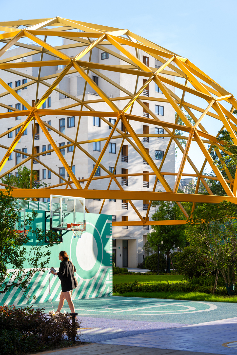 项目由两大元素构成:一方穹顶和一个圆环。一个创造了半围合的聚集空间,另一个则界定了入口。虽然两者的几何形态直接明了,但意义随着使用而生成。项目坐落于上海多所理工科大学的教职工住宅区内,设计并非遥不可及的象征符号,而是融入日常的景观场所。这两个元素既借鉴了全球通用的科学结构形态,也与当代中国科学文化中并存的传统实践形成呼应。两者并非意在“表现”科学本身,而是营造一种氛围——在这里,科研、文化记忆与日常仪式可以并存。意义并非预设,而是在使用、重复与时间积淀中,缓慢浮现。
