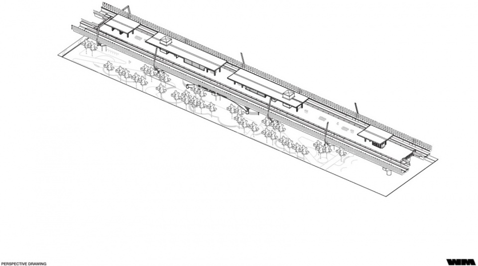 Keon Park 车站对公共与文化领域作出了重要贡献。车站区域通过宽敞的前广场、开阔的视线以及直观的流线组织,提升了安全性、舒适性与使用便捷性。穿孔铝制栏杆与隐私屏沿高架桥延伸,延续了 Mernda 线沿线建立的原住民共创设计语言。这些构件在为周边住宅提供必要视觉遮挡的同时,也强化了整体交通廊道的识别性与文化连续性。