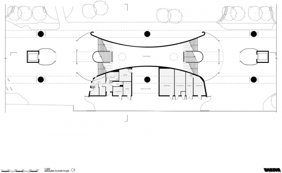 Programmatically, the station is designed for clarity, efficiency and inclusivity. A centralised arrangement of lifts, switchback stairs and emergency egress routes ensures equitable access and intuitive movement. Elevated concourse podiums connect stair mid-landings, eliminating residual spaces and enhancing visibility across the station. Circular lights illuminate the concourse beneath the platform, improving passenger experience while supporting passive surveillance and CPTED principles.