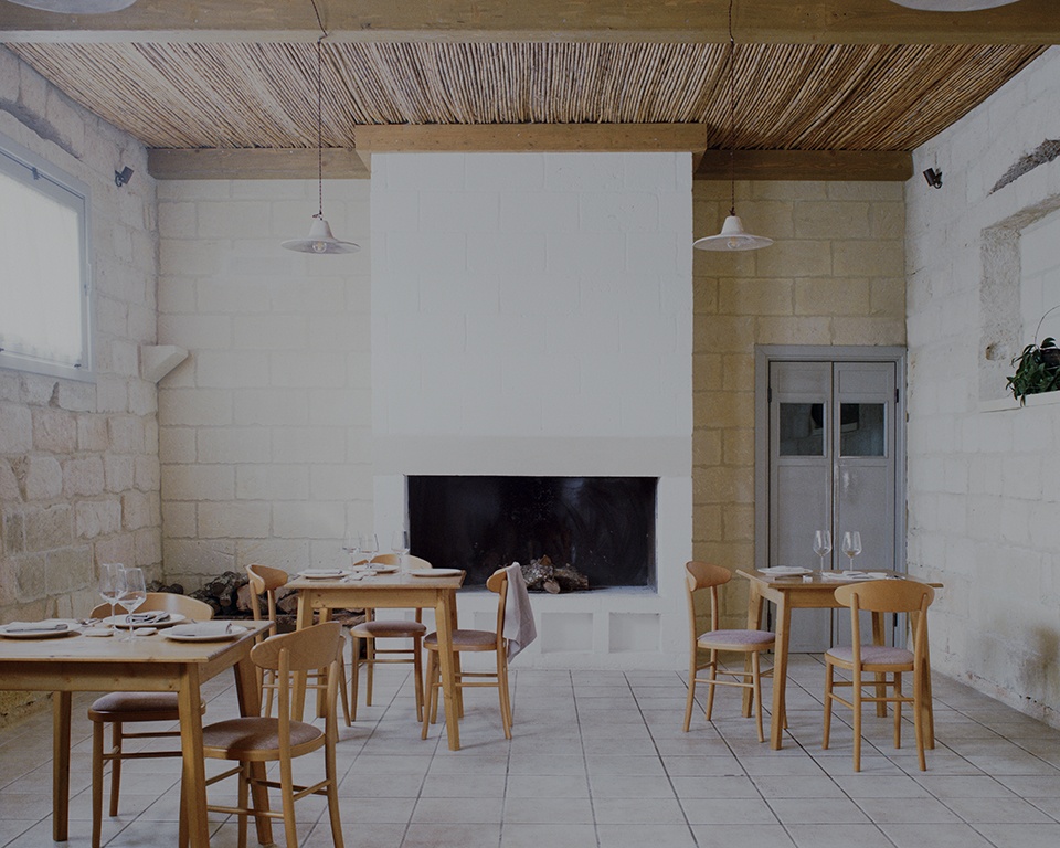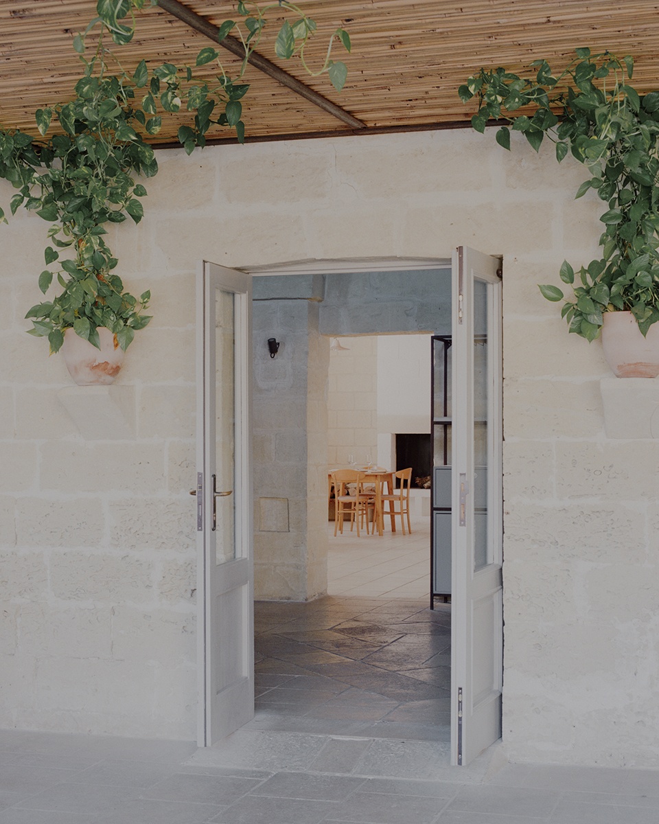 Caronte is the restoration project of a farmhouse in the Salento countryside, completed by Margine in 2025. In the lands between Lecce and Vernole, surrounded by olive trees and just a few kilometers from the sea, stands Masseria Caronte, a rural home where sheep were once raised and wool and yarn were produced. Over the years, after numerous businesses and years of abandonment, the structure underwent a major renovation and conversion into a restaurant in 2024. Commissioned by a group of young local entrepreneurs, Margine proposed a project aimed at eliminating the numerous additions that had occurred over time and restoring the factory’s ancient charm.