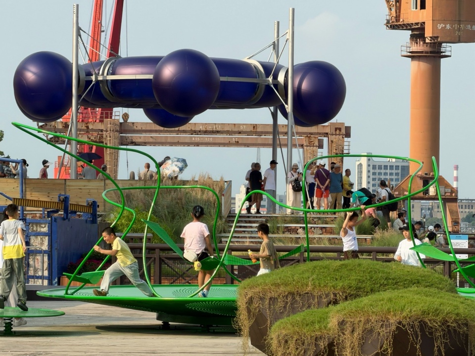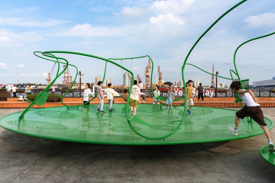 At the 2025 Shanghai Urban Space Art Season, a dynamic “Green Sun” rises on the riverside of Fuxing Island Ship Berth Park—an installation we named “Sun Machine”.