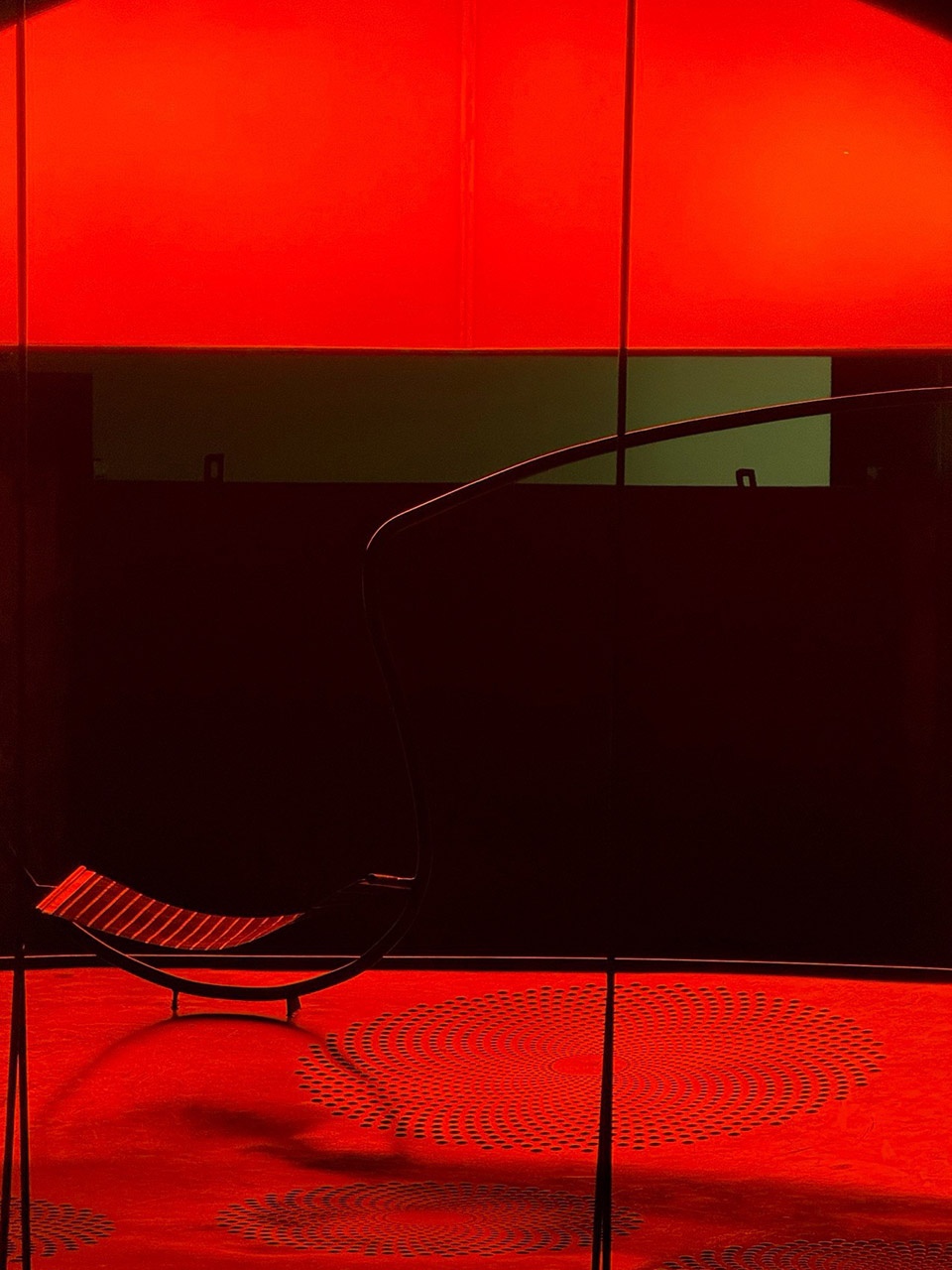 ▼深红色光晕笼罩装置,Installation Bathed in Deep Red Halo